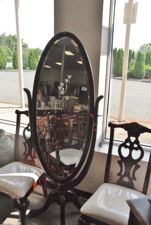 Mahogany cheval mirror with two part glass, ht. 10in. wd. 28in.