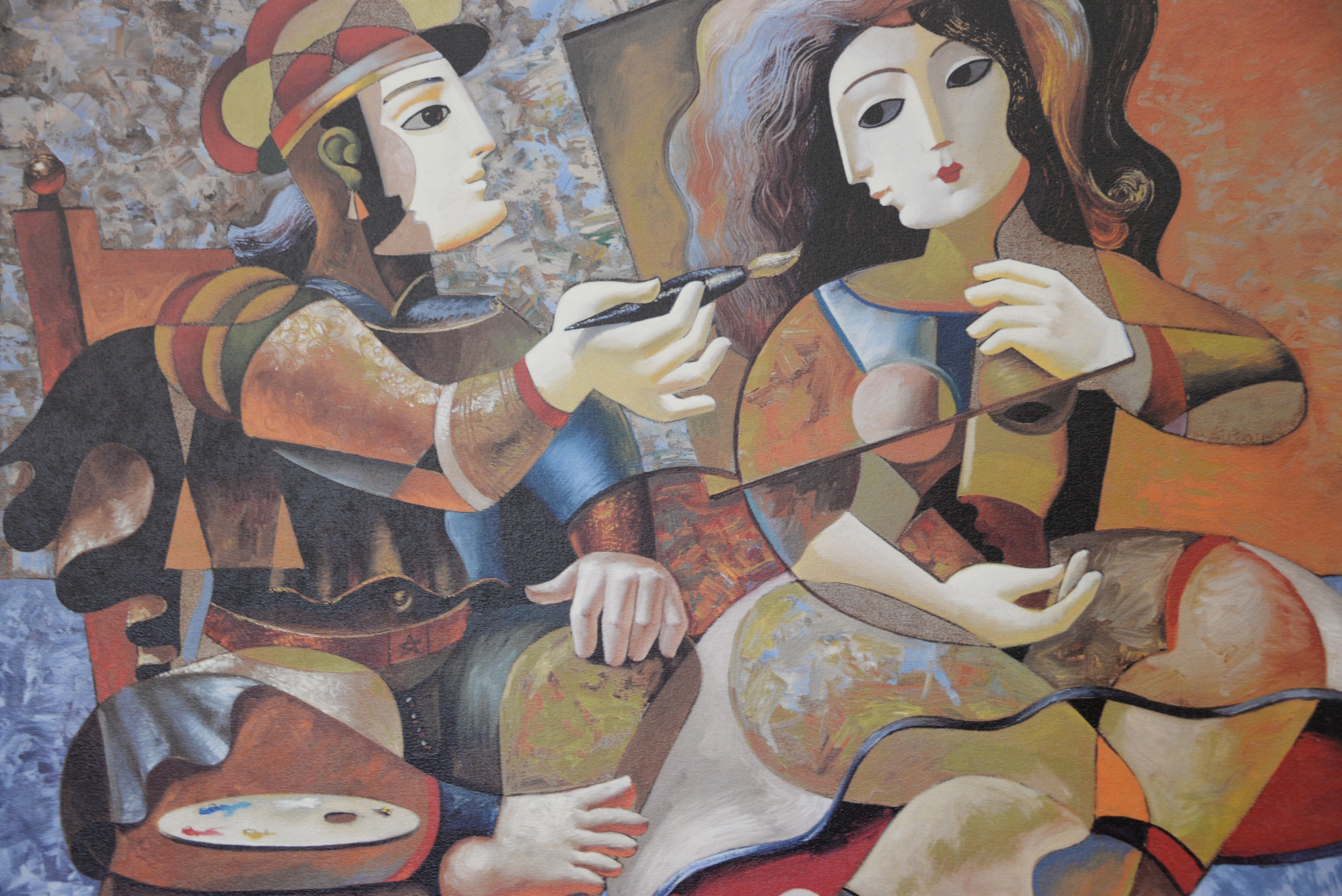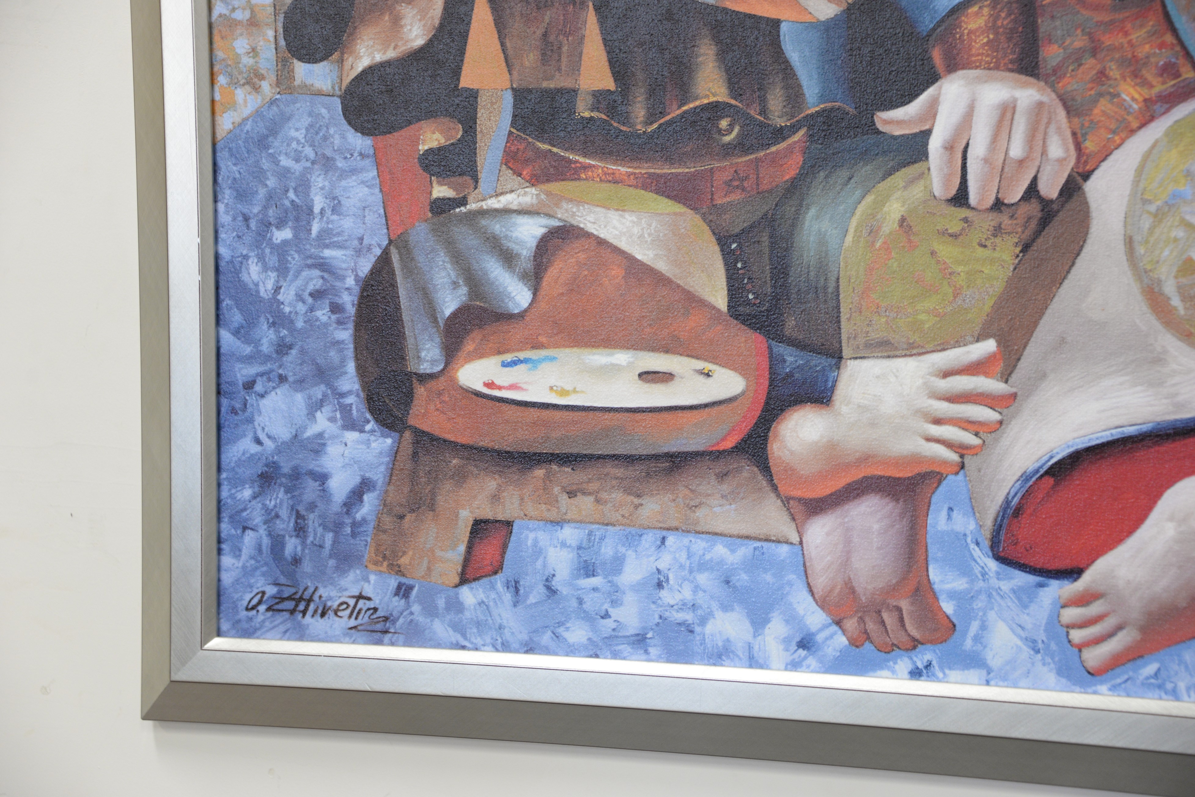 Oleg Zhivetin 1964 embellished serigraph of a young artist signed lower left O. Zhivetin, 30 x 40.