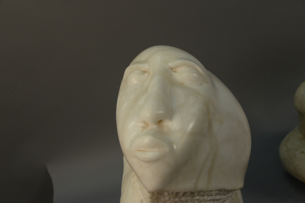 Lot 305: Ousmane Gueye b. 1956 marble two faced sculpture signed in marble Ousmane Gueye. ht. 22in. Provenance: Collection of Anne Jones Wi…