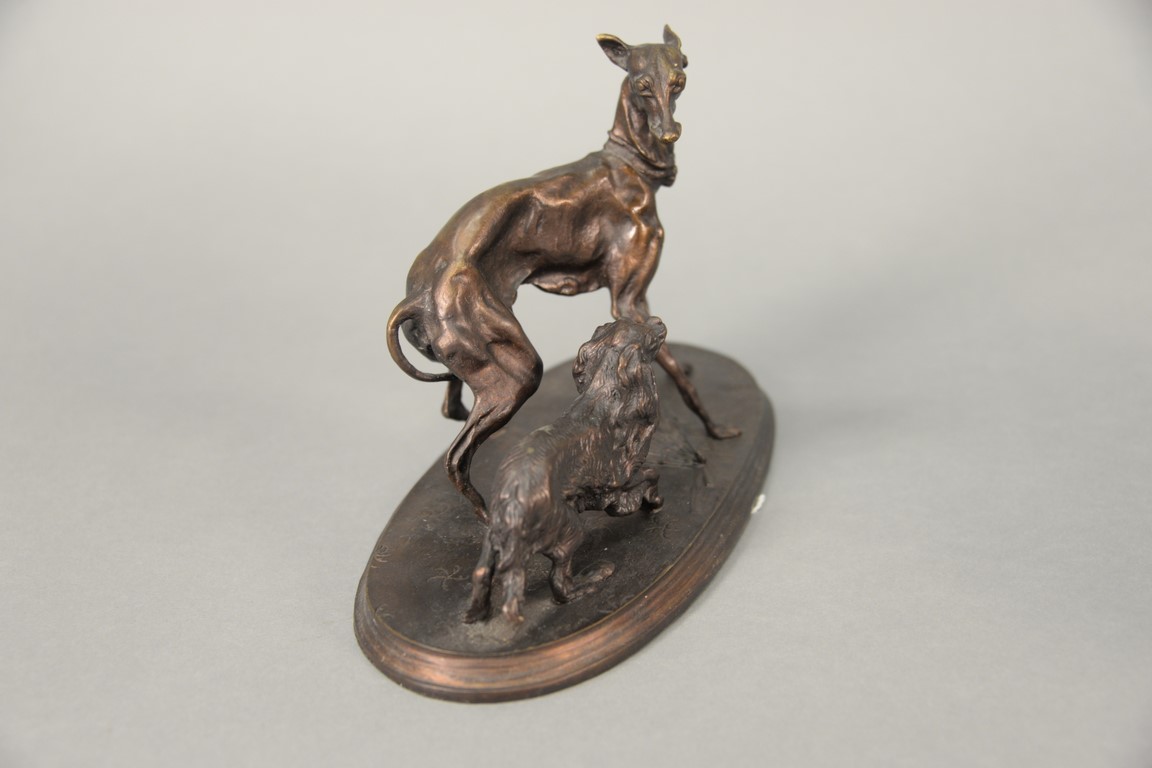 Lot 305: Pierre Jules Mene 1810-1879 bronze restrike King Charles Scaring the Whippet signed on base: PJ Mene height 6 inches, l…