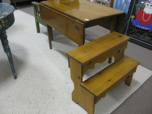 Lot 305: Pine drop-leaf table with two tier pine plant