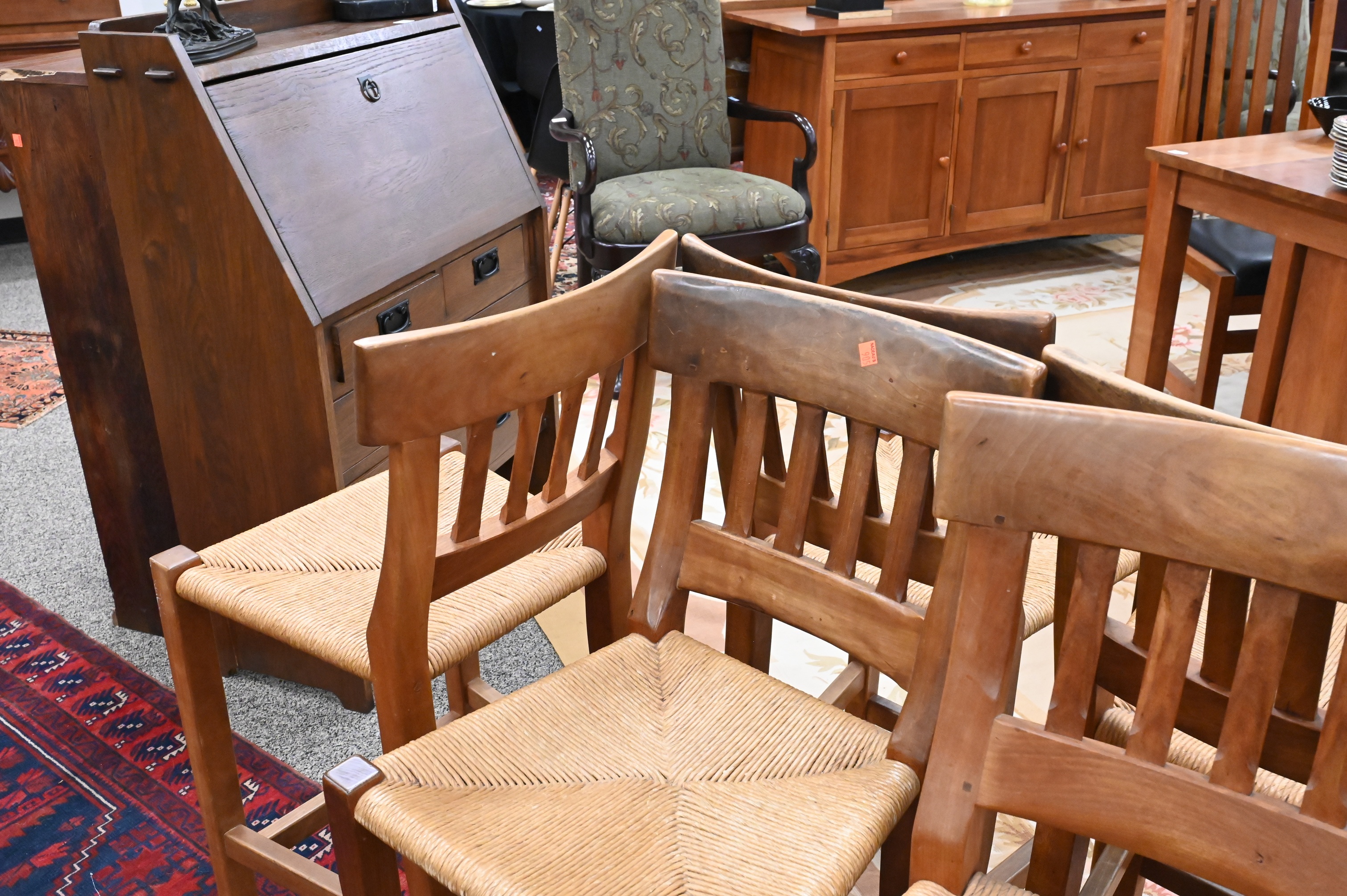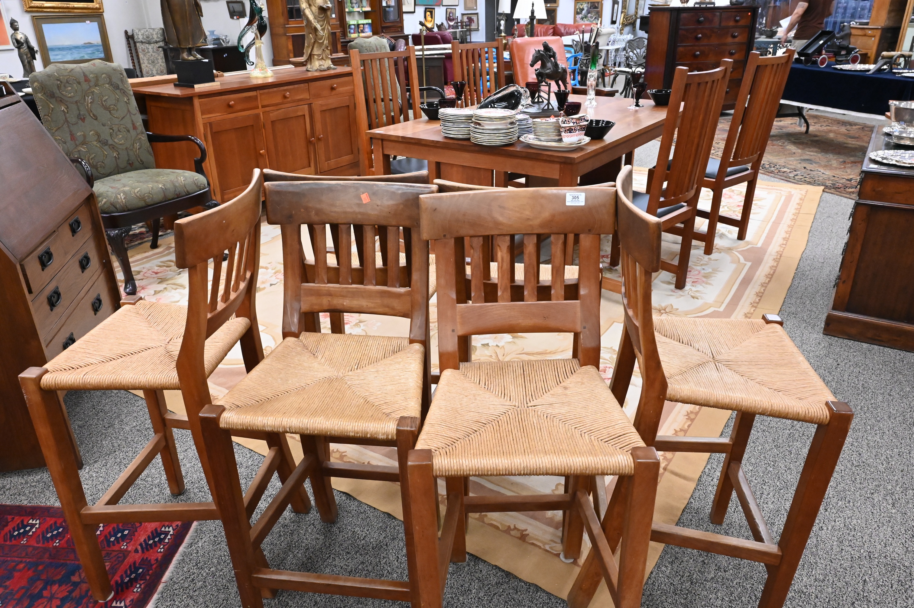 Lot 305: Set of Six Cherry Barstools having Rush Seats