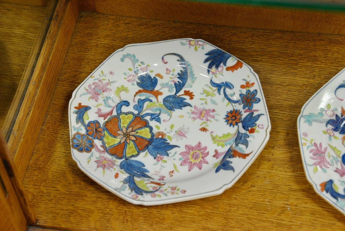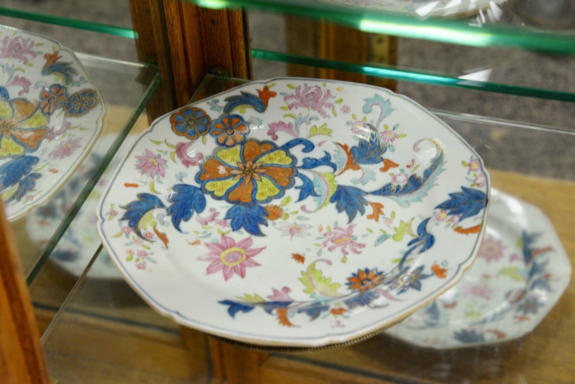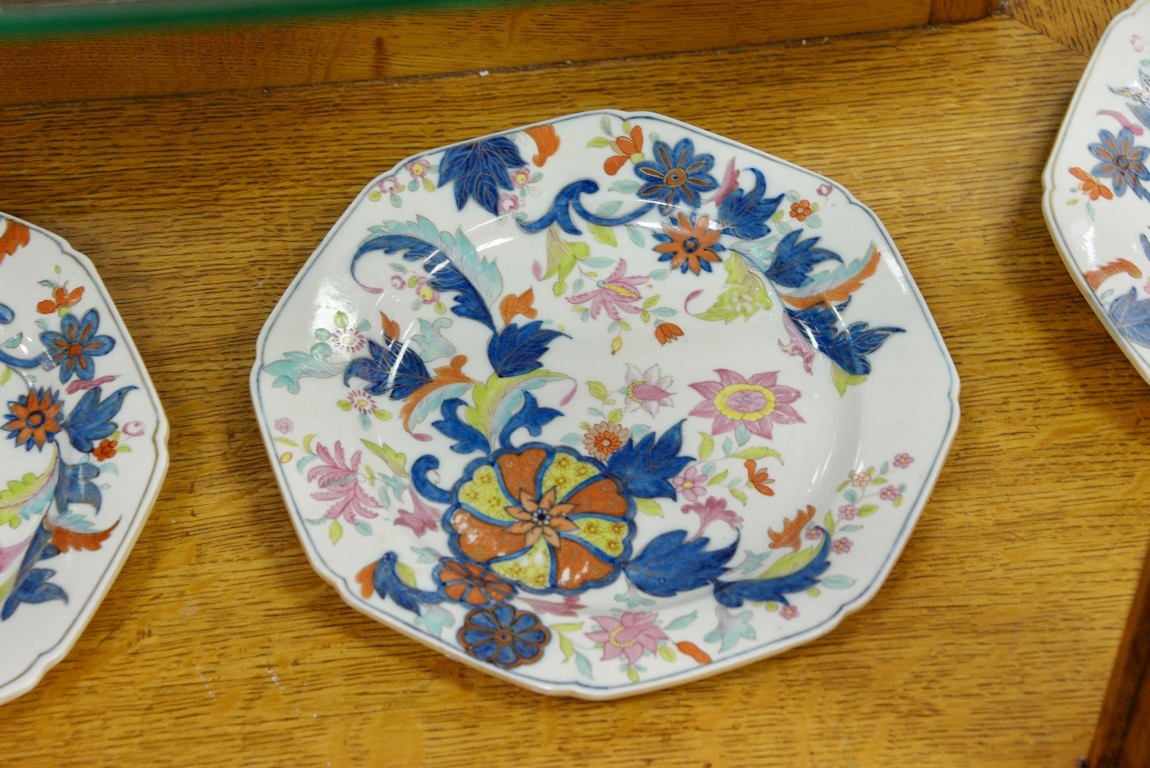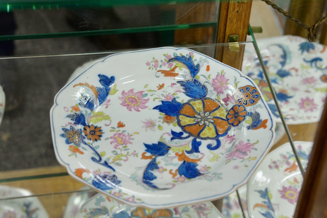Lot 305: Set of twelve Chinese Export Pseudo Tobacco Leaf plate with scalloped edge and enamels of pink, yellow, iron-red, and green with ov…