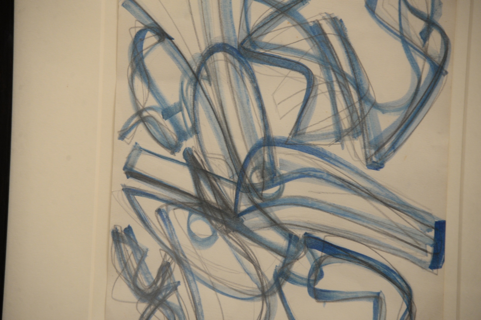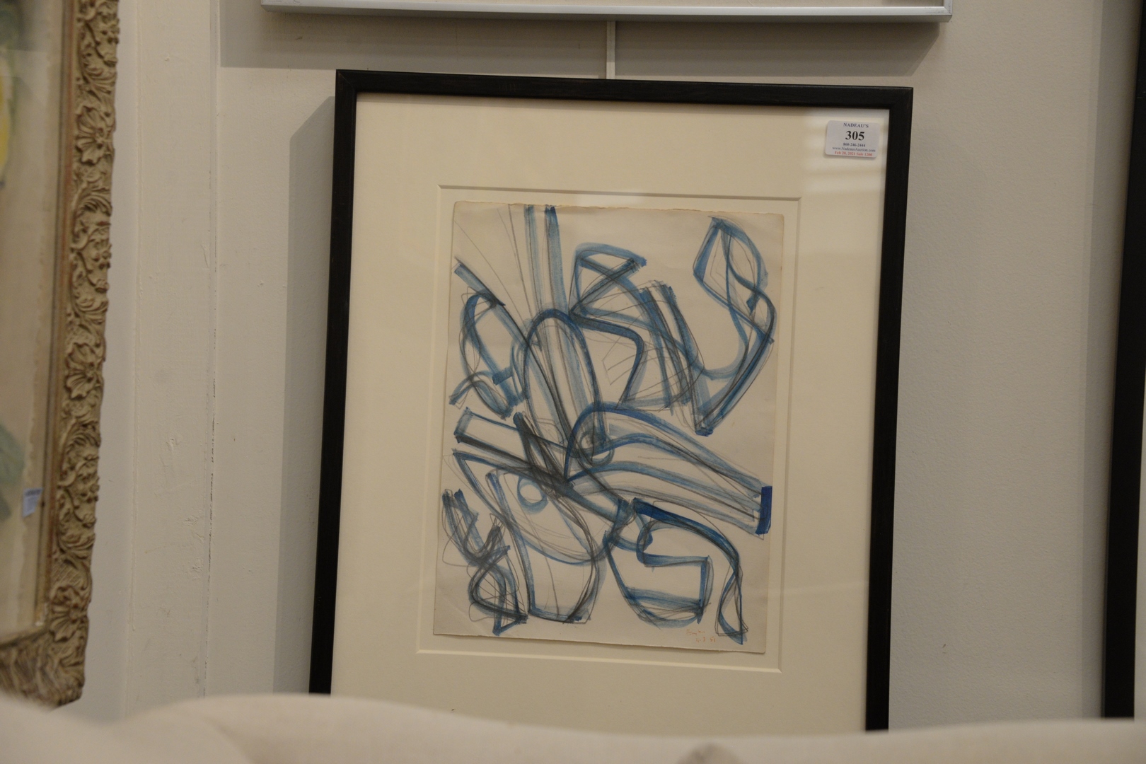 Lot 305: Stanley William Hayter (American, 1901 – 1988), untitled, 1951, oil and pencil on paper, signed and dated lower right Hayter/31.3.51, Virginia Lust Gallery label on the reverse, 12 3/4″ x 9 3/4″.