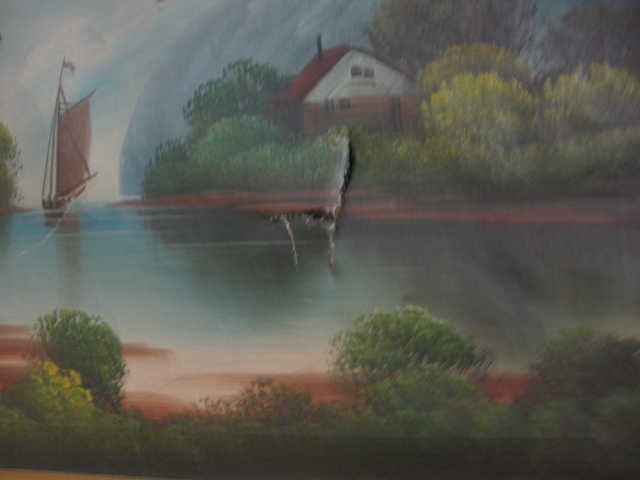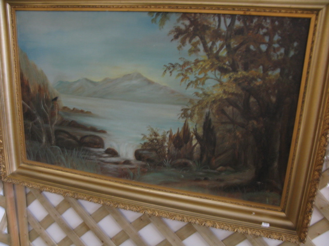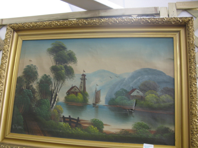 Two paintings in gold Victorian frames.
