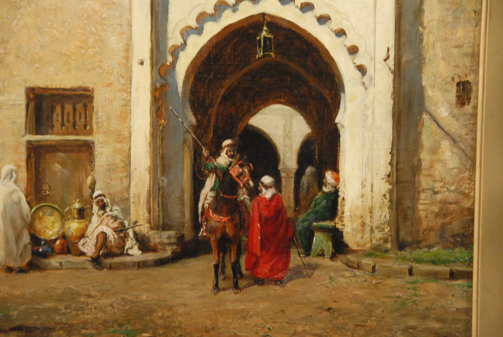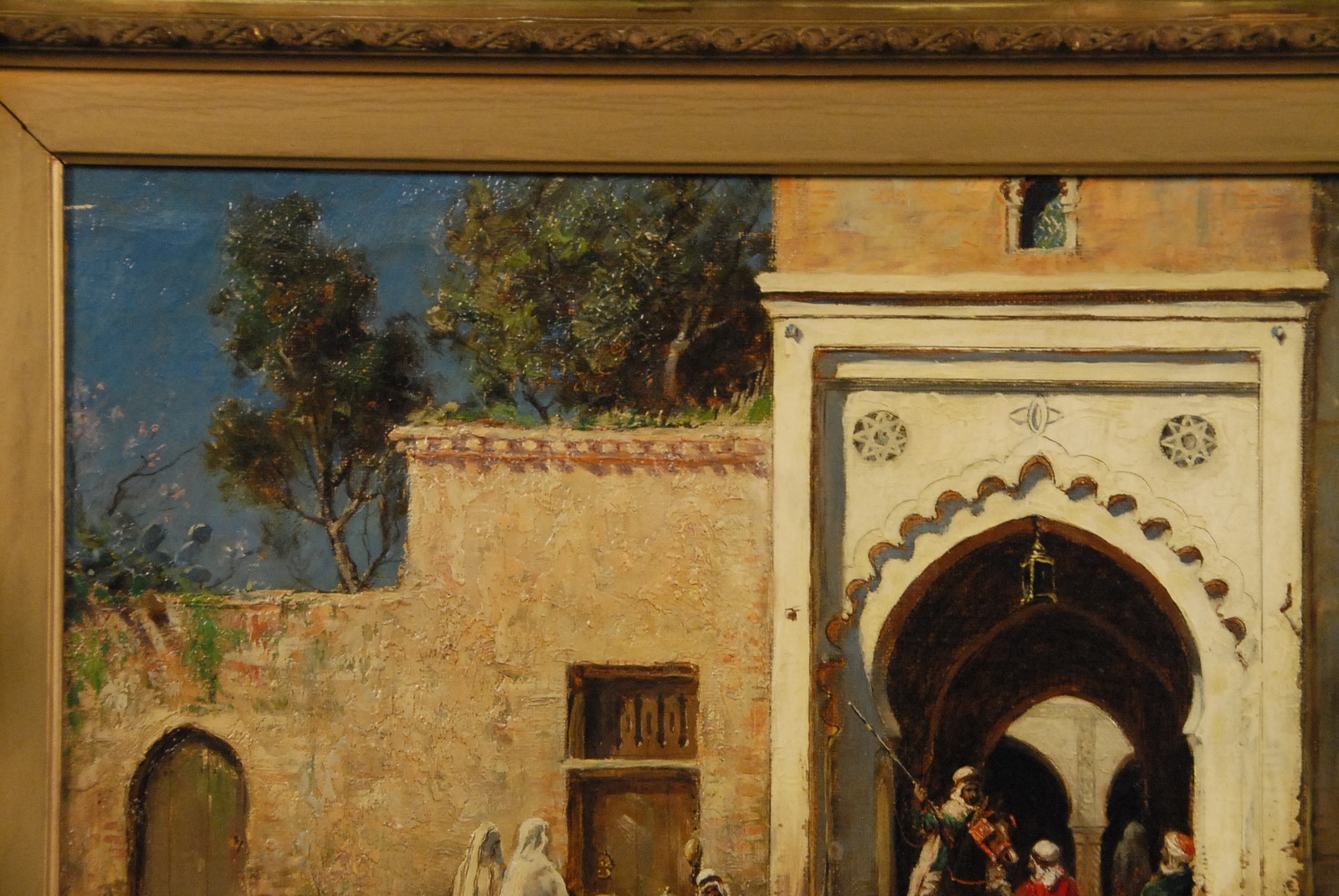 Lot 306: Addison Thomas Millar 1860-1913 OUTSIDE FRONT ENTERANCE ALGIERS oil on canvas signed lower left Addison T Millar 12 x 16