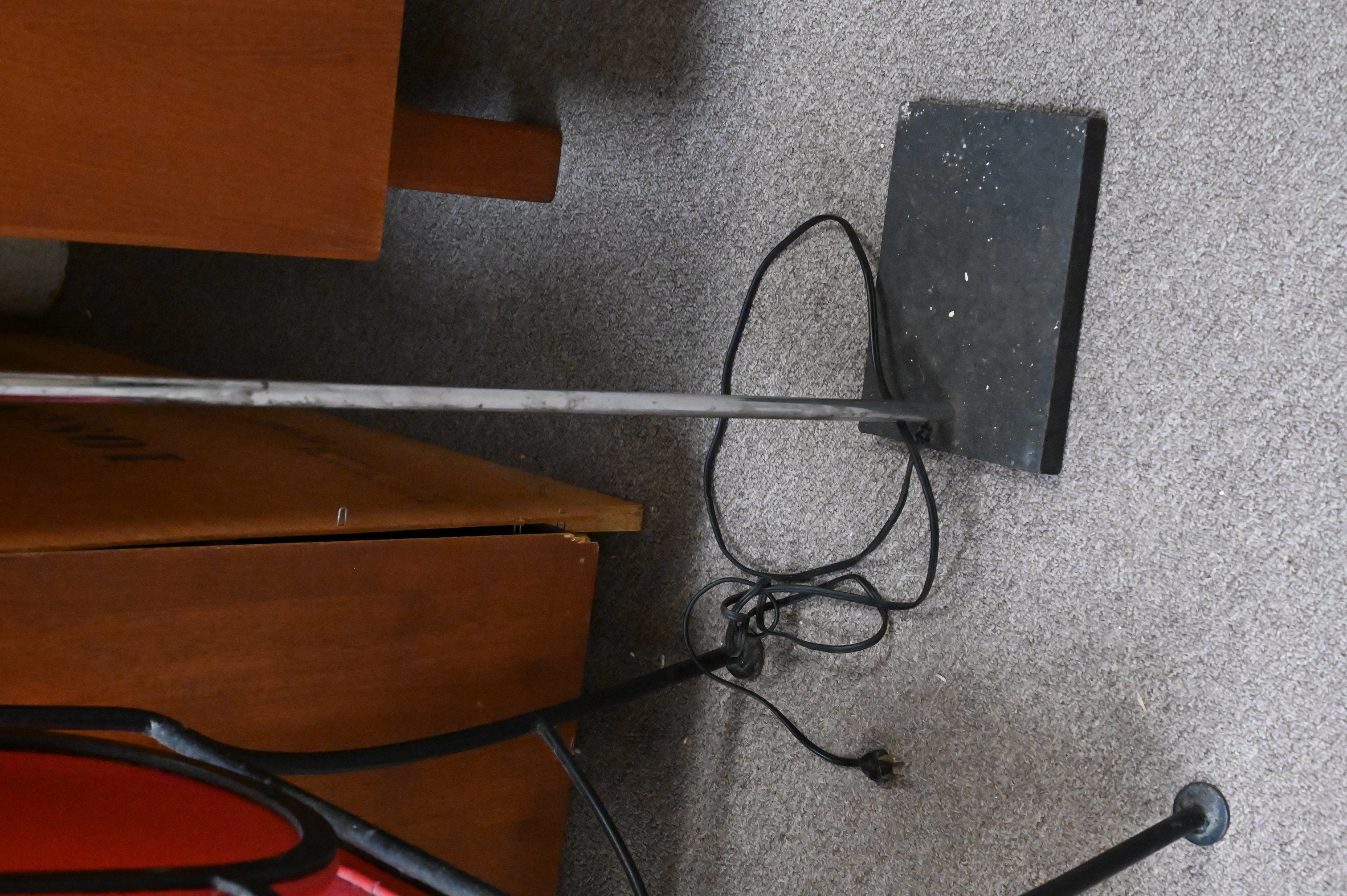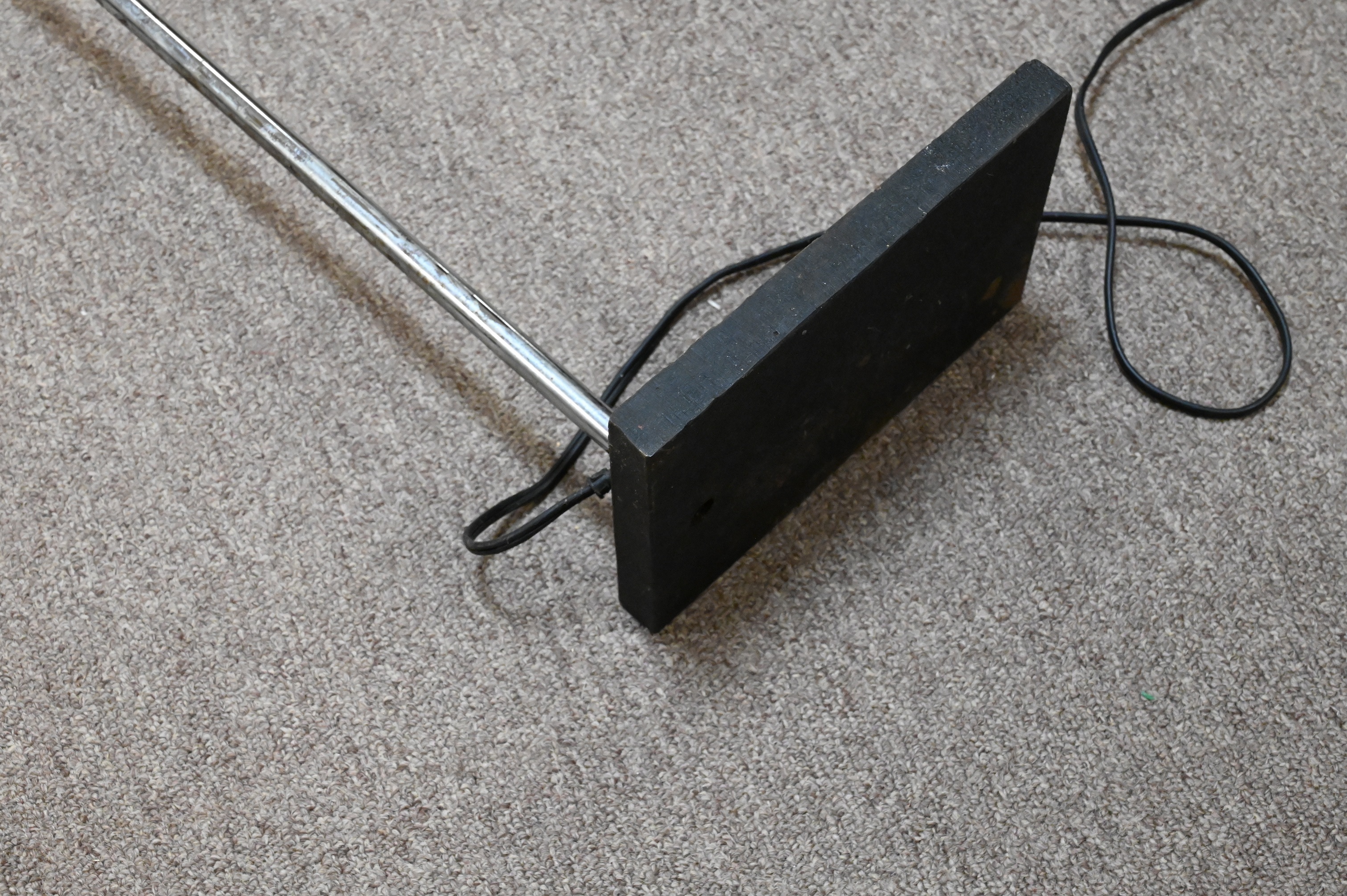 having yellow cubist box shade set on chrome shaft, unsigned