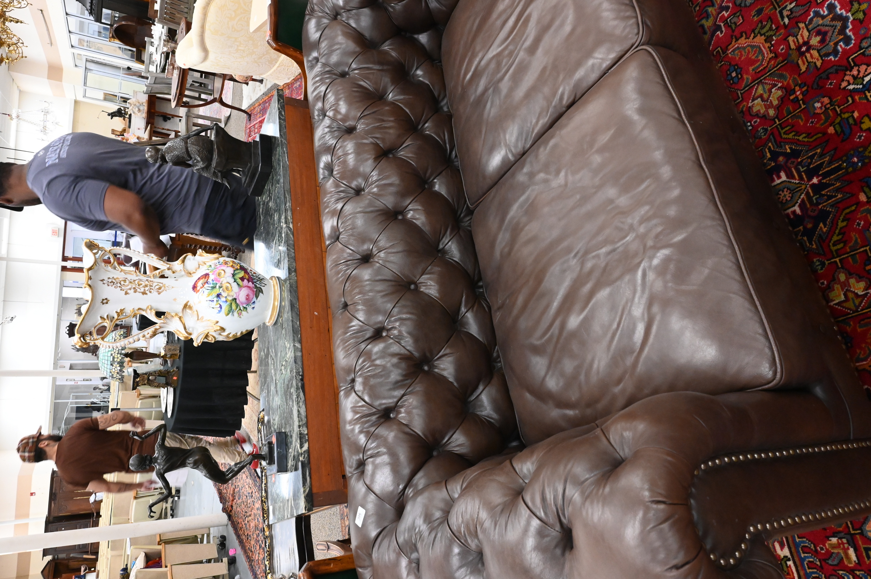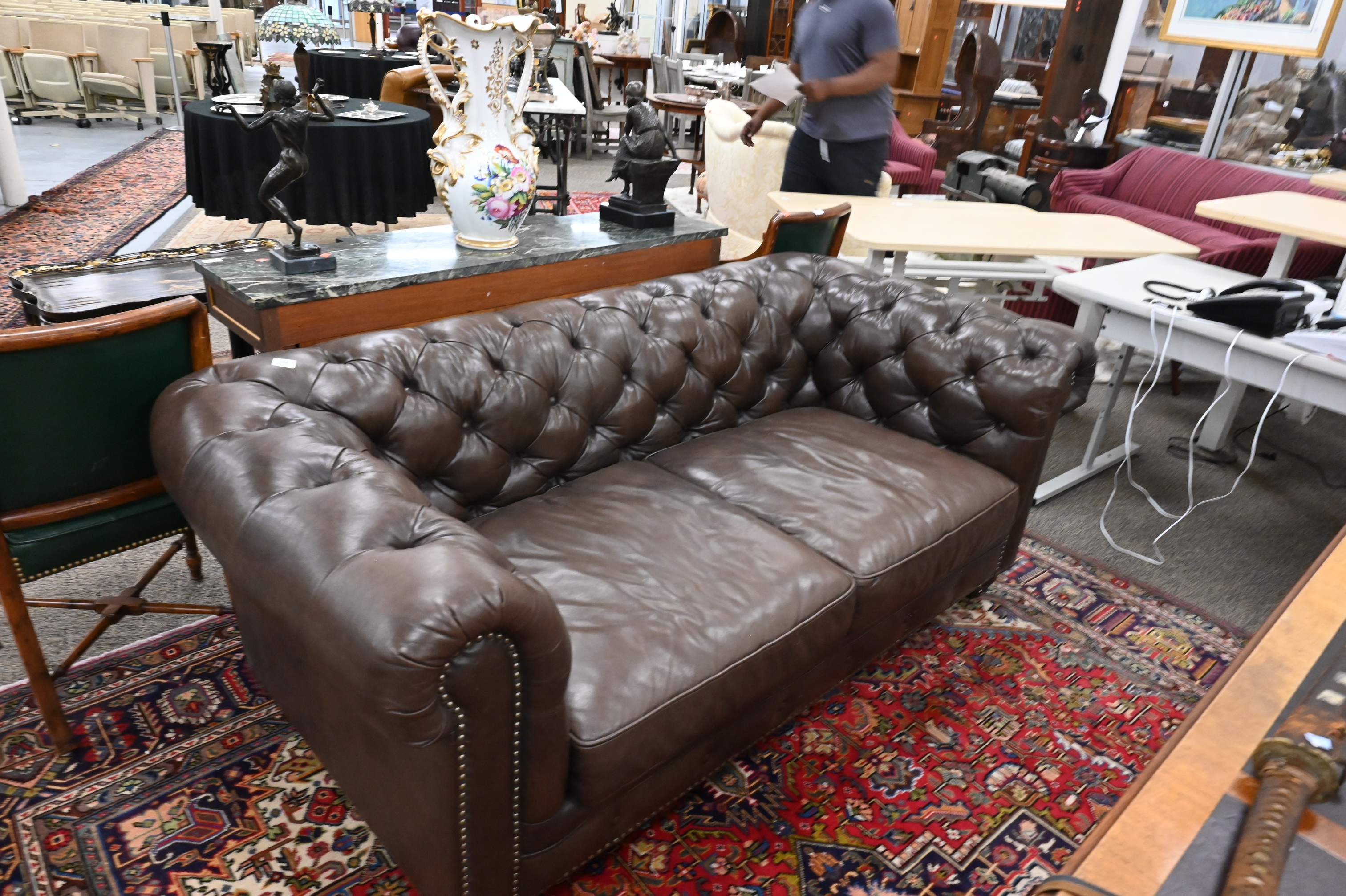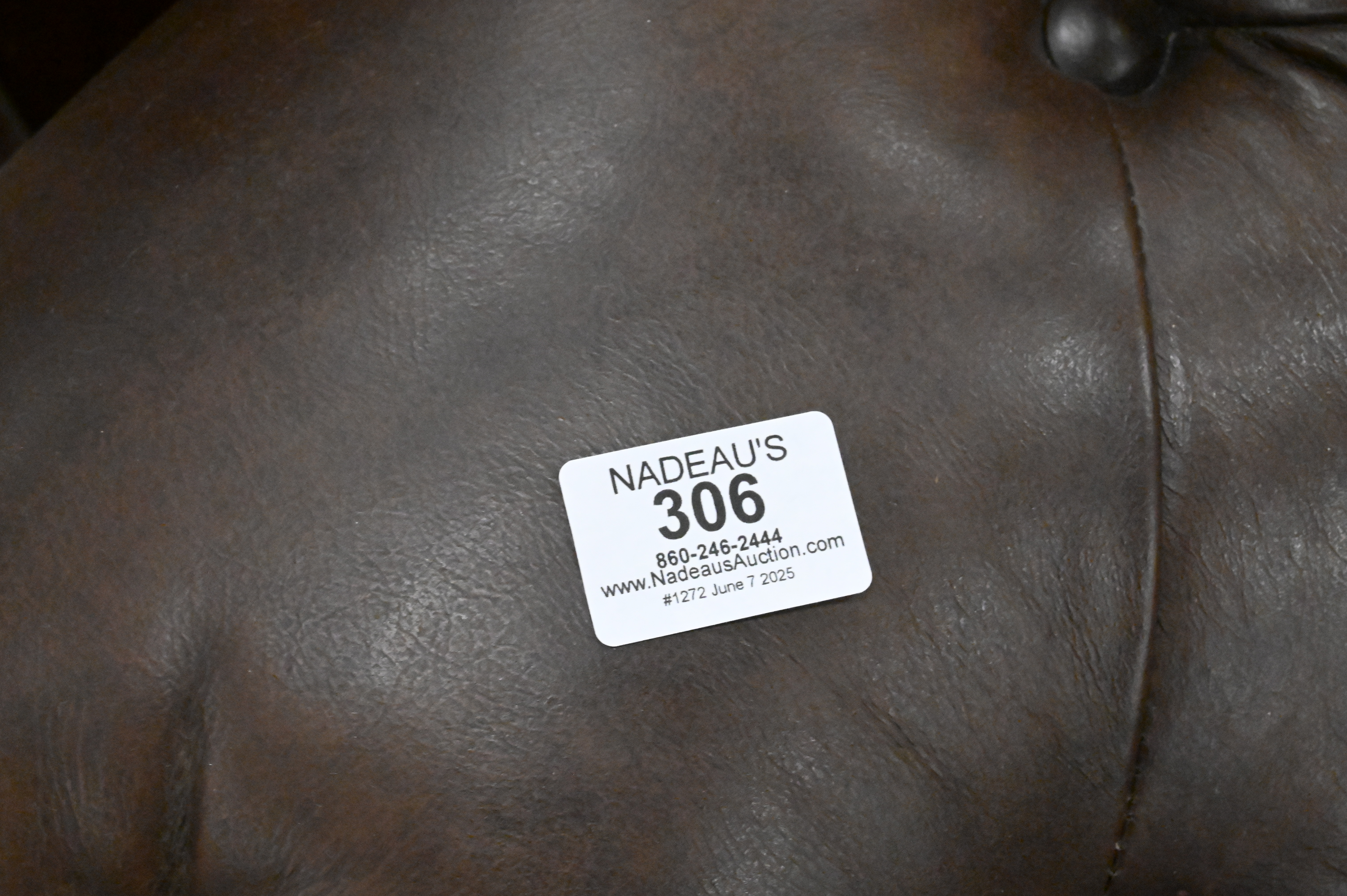 Lot 306: Chesterfield Style Brown Leather Loveseat