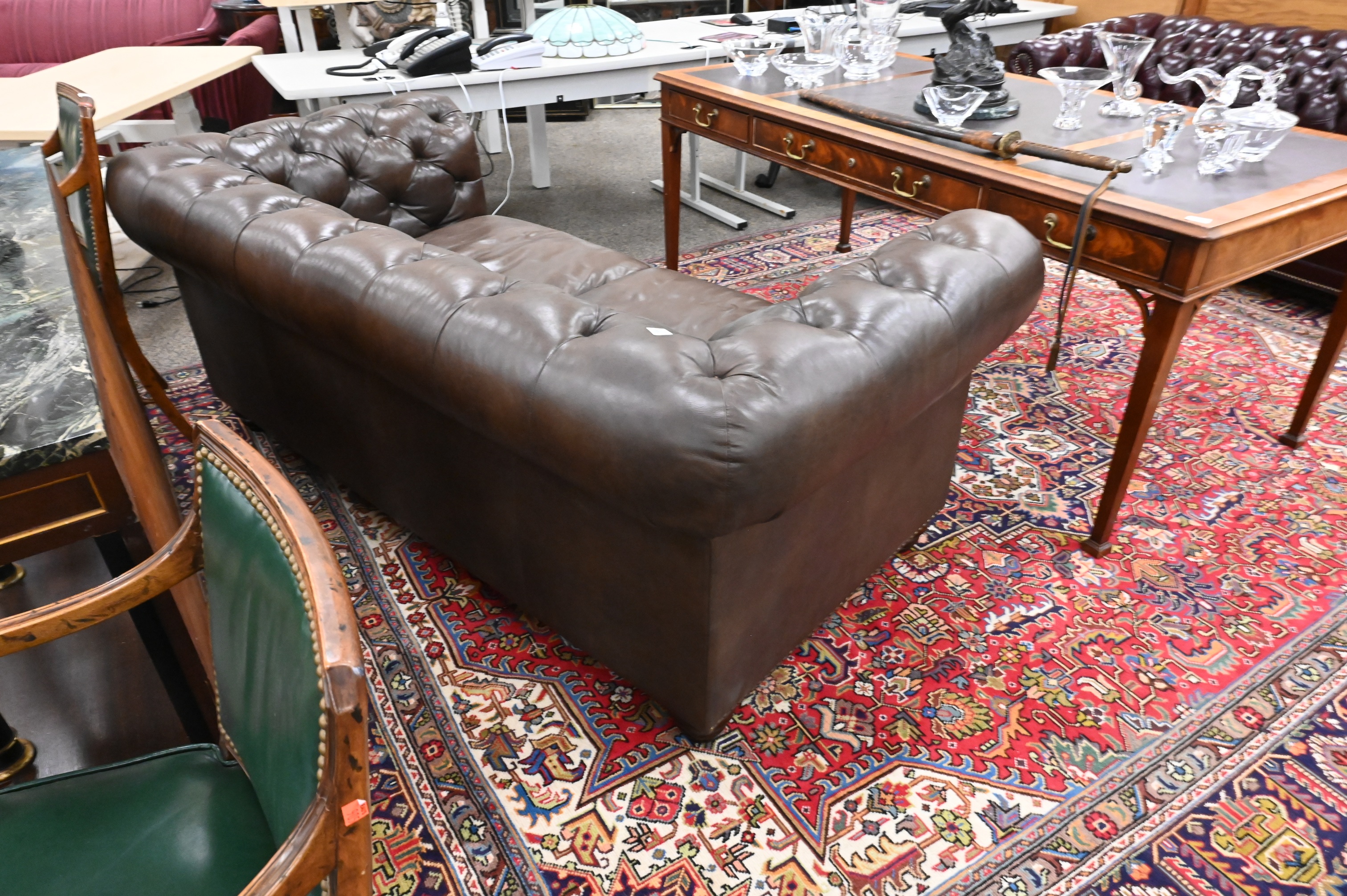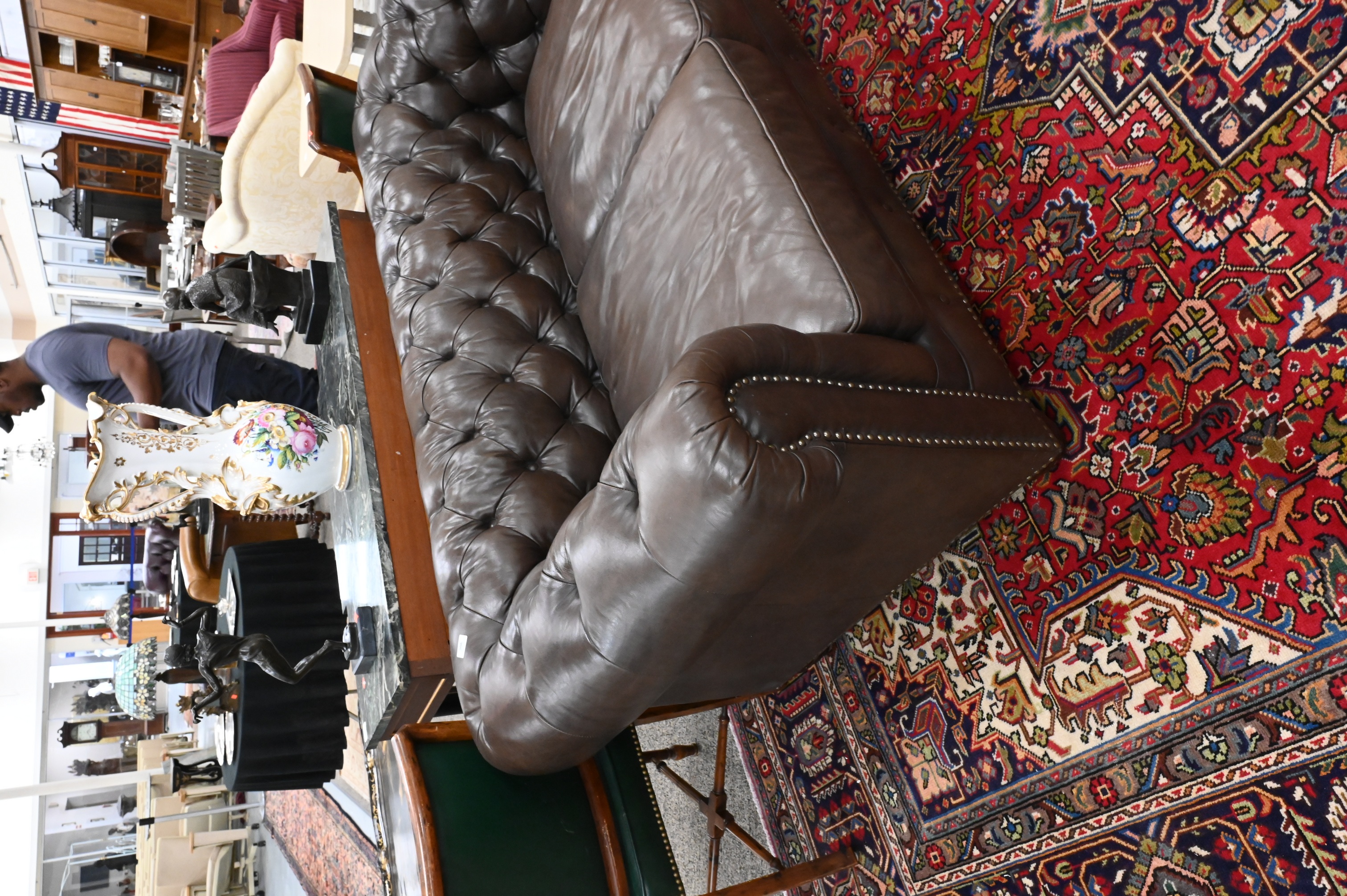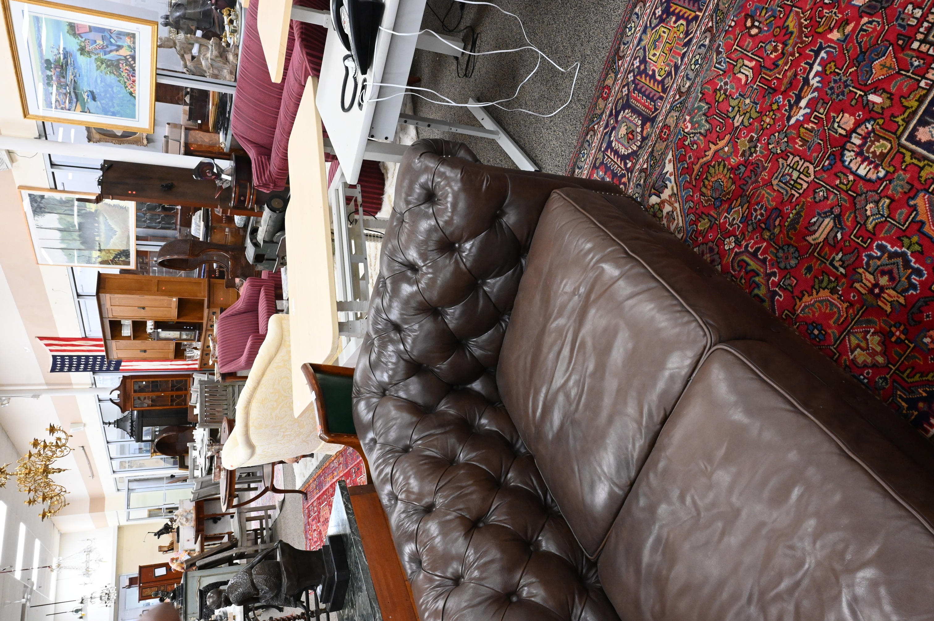 Lot 306: Chesterfield Style Brown Leather Loveseat