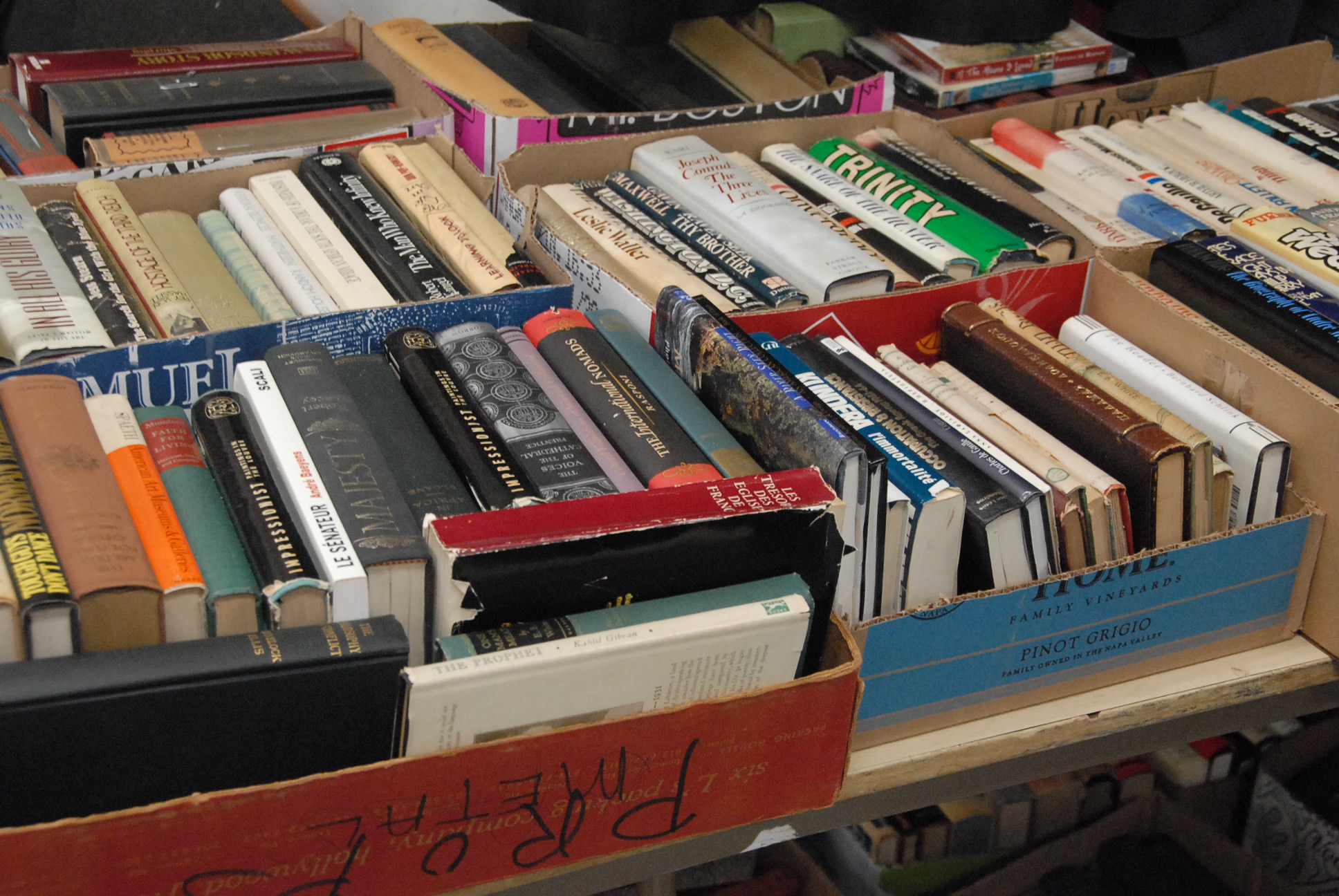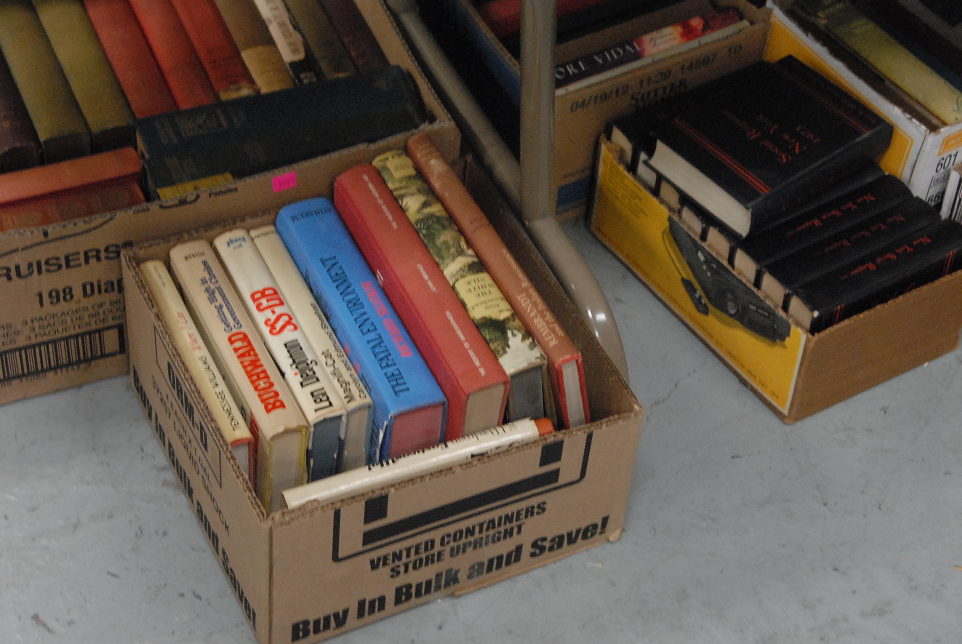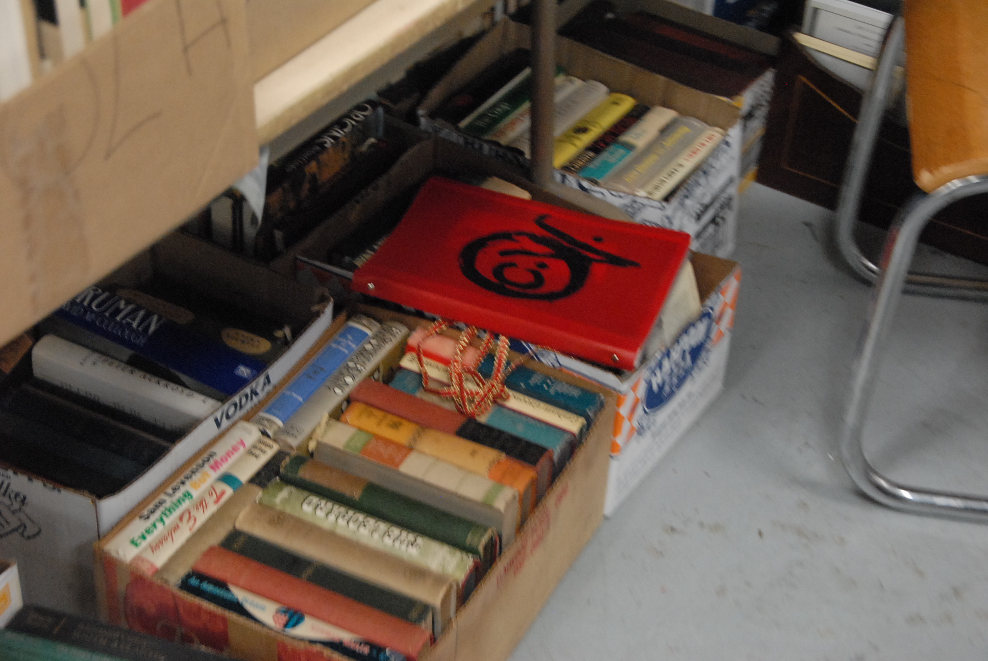 Forty-four boxes of various books.
