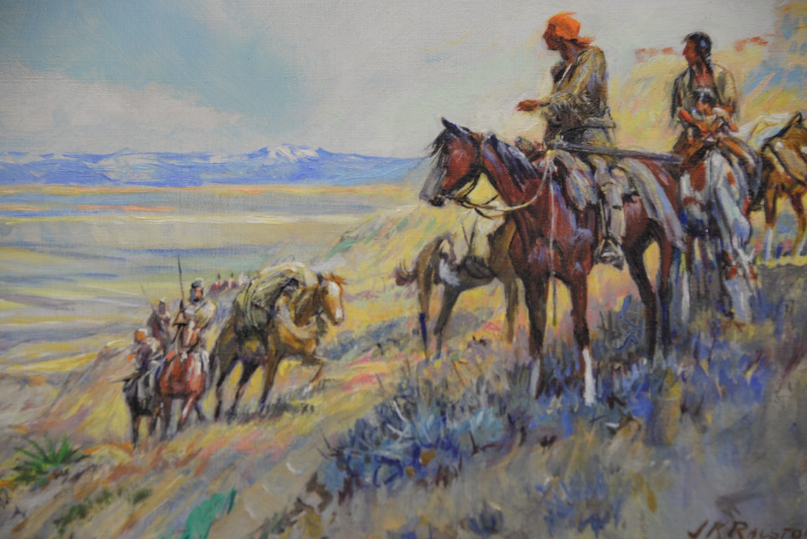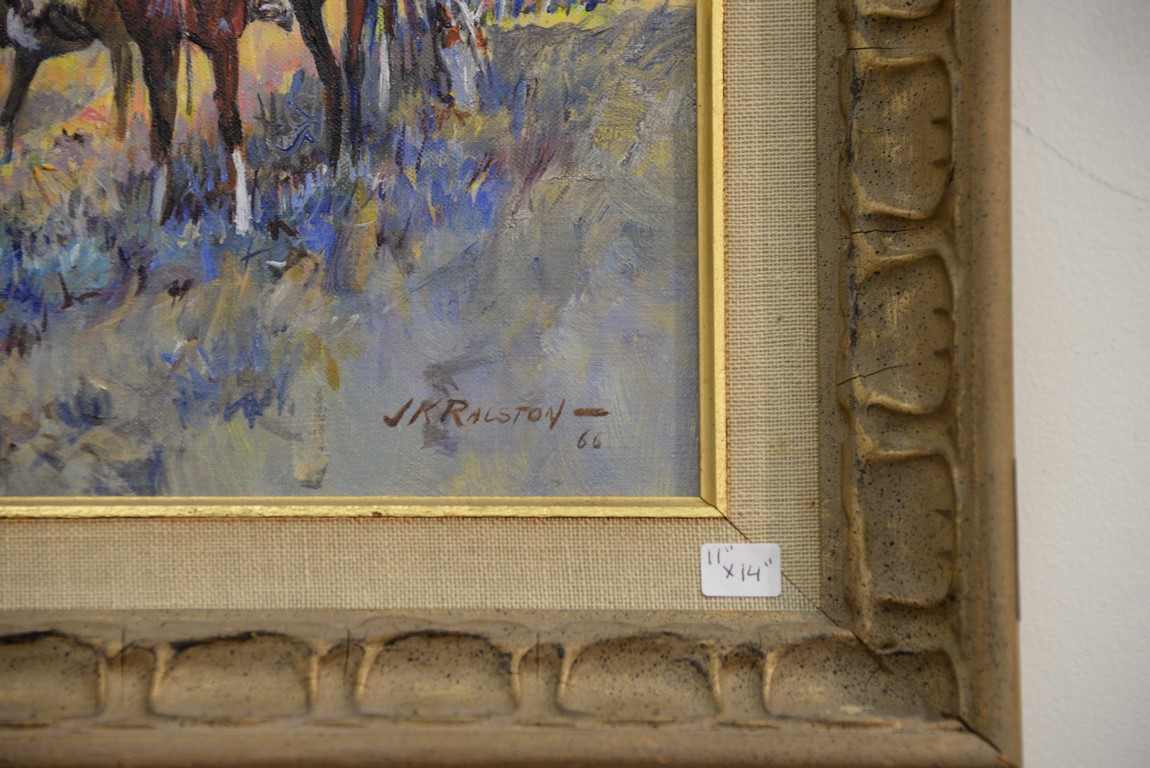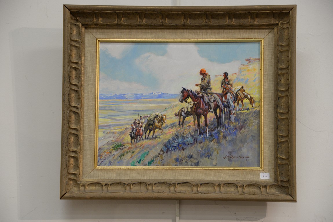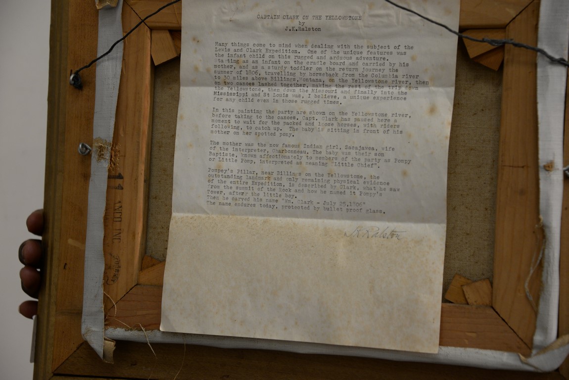 Lot 306: JAMES KENNETH RALSTON 1896-1987 Captain Clark on the Yellowstone oil on canvas signed lower right J. K. Ralston 66 11 x 14