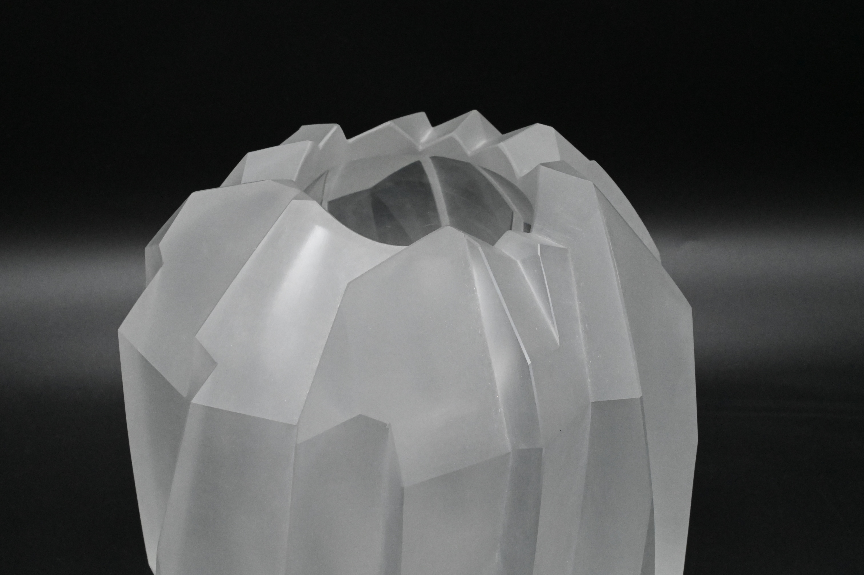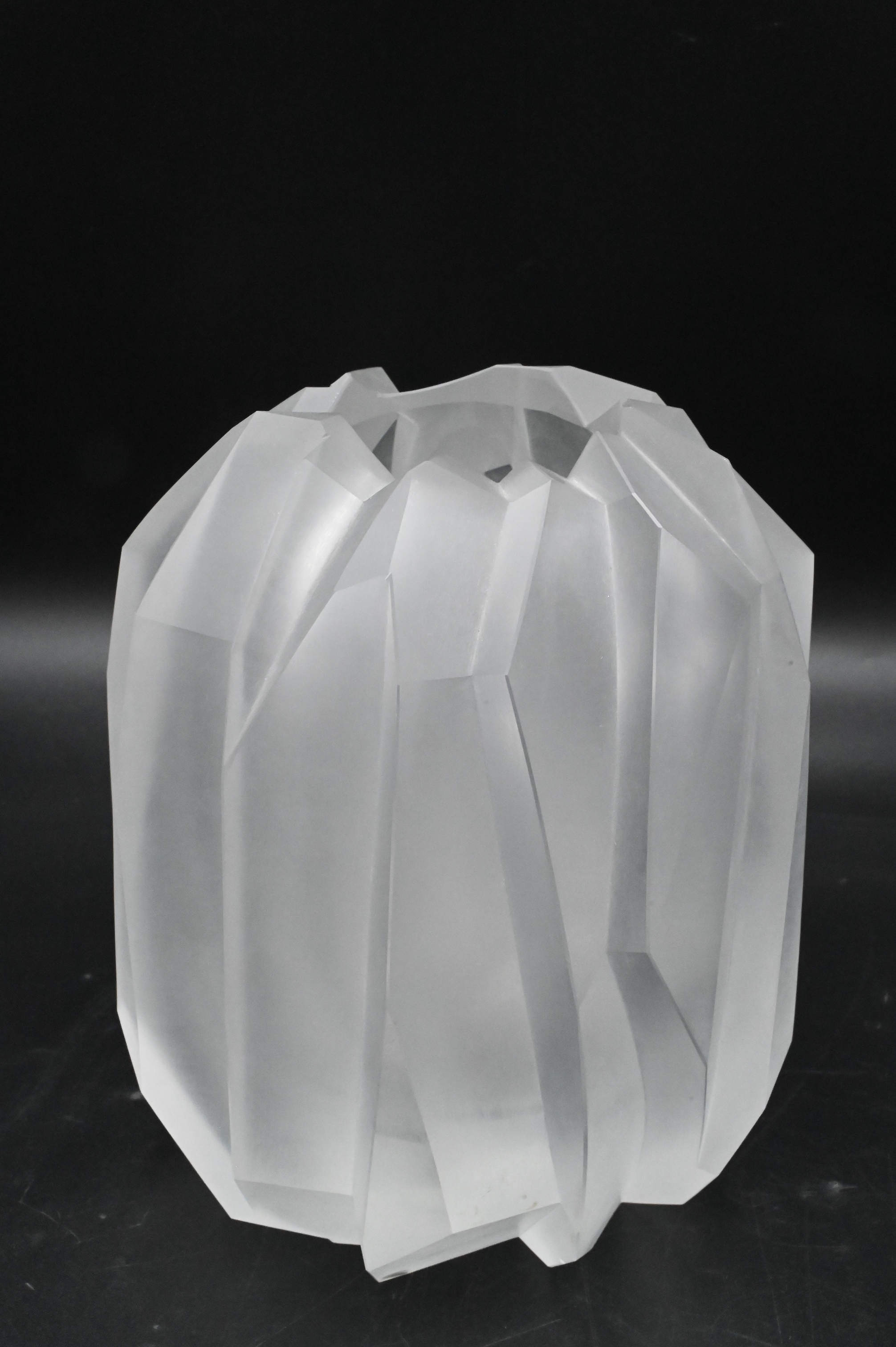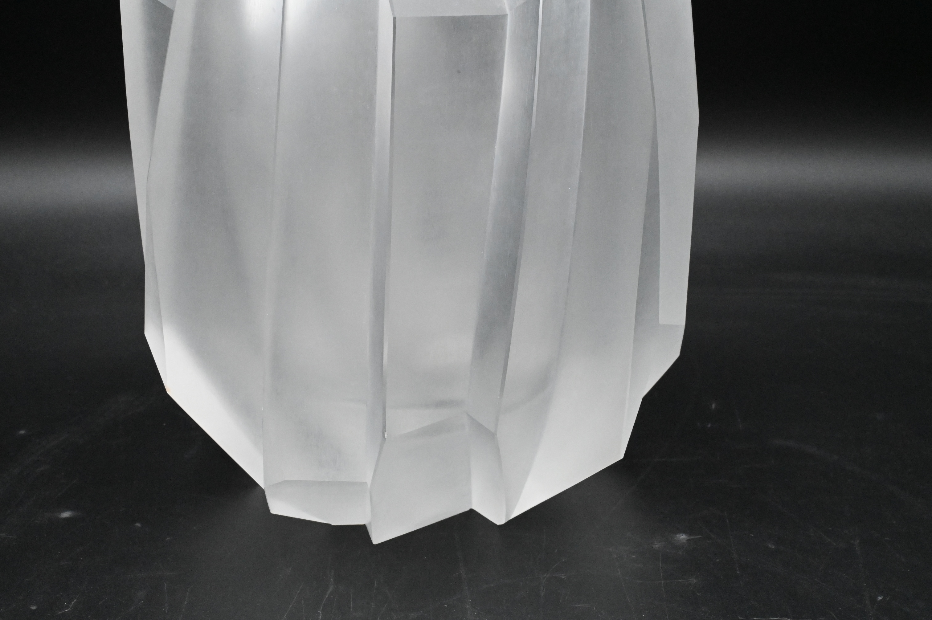 Lalique ” Glacier” Blown Frosted Crystal Vase, by Sebastian Menschhorn from J&L Lobmeyr, inspired by the glacial crystals in the Austrian Alps, having crude cut exterior to reveal soft and round interior, marked on bottom “sm/om J.L 2004 24/181” height 9 inches, width 7 1/2 inches