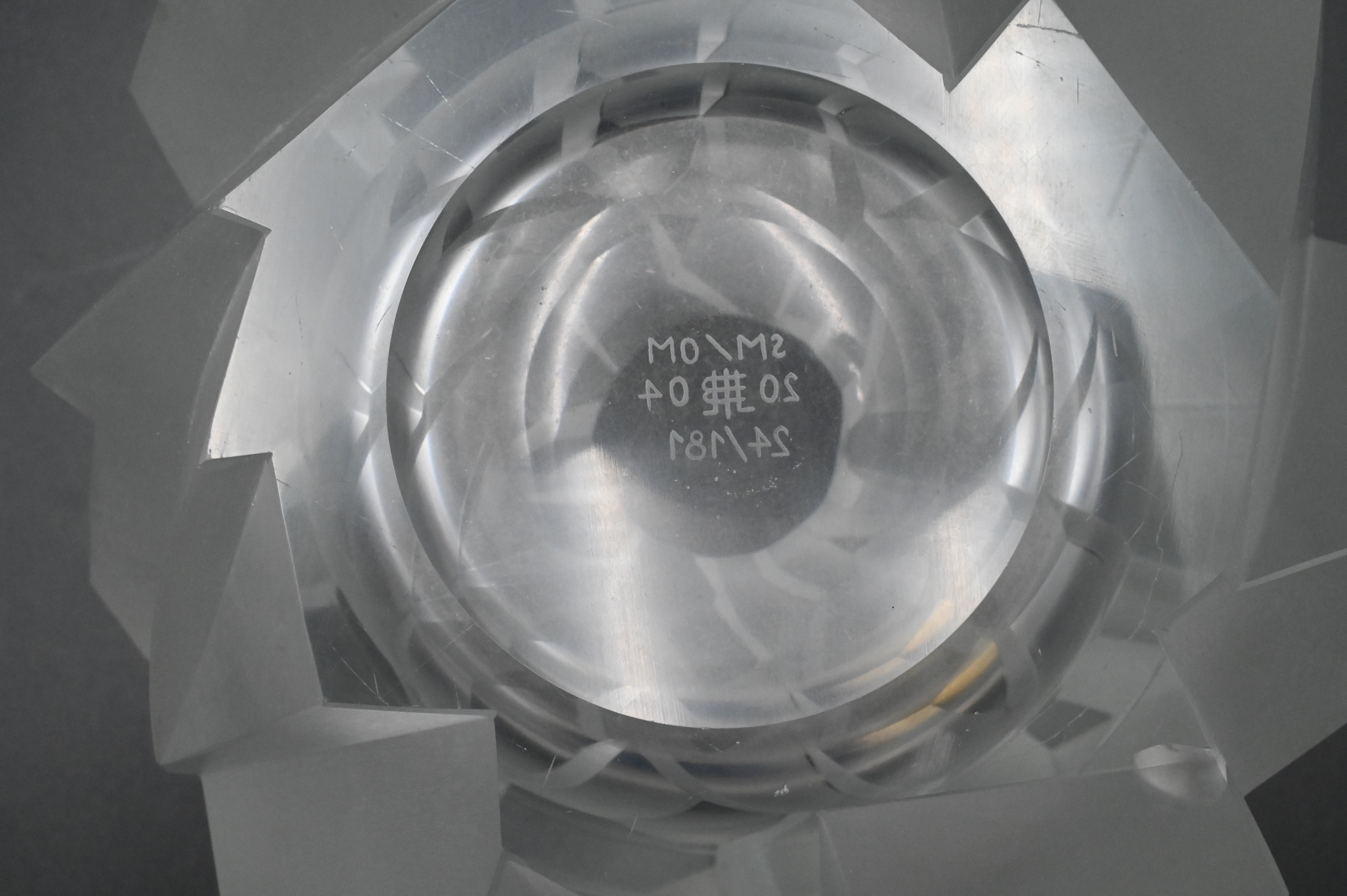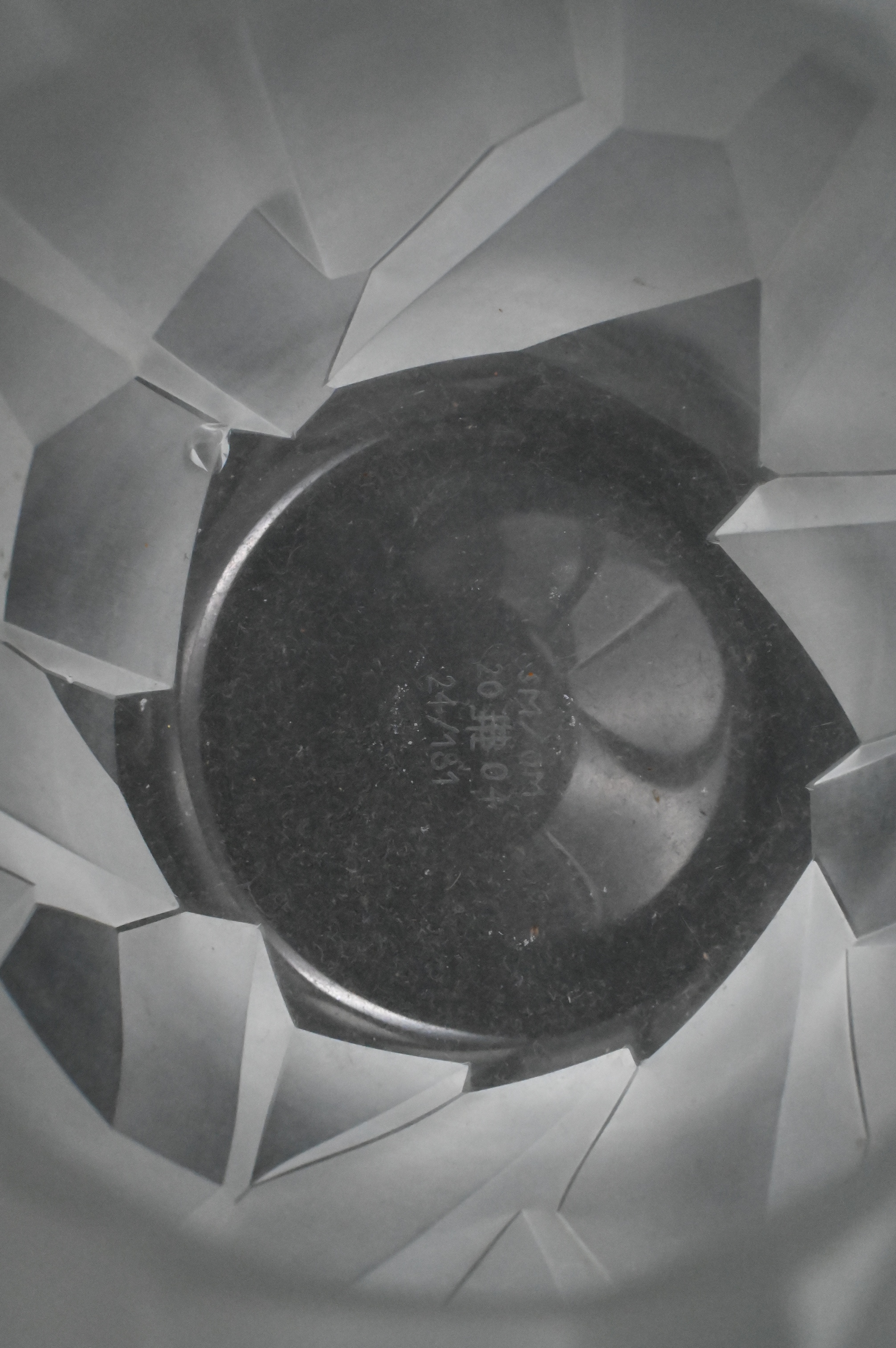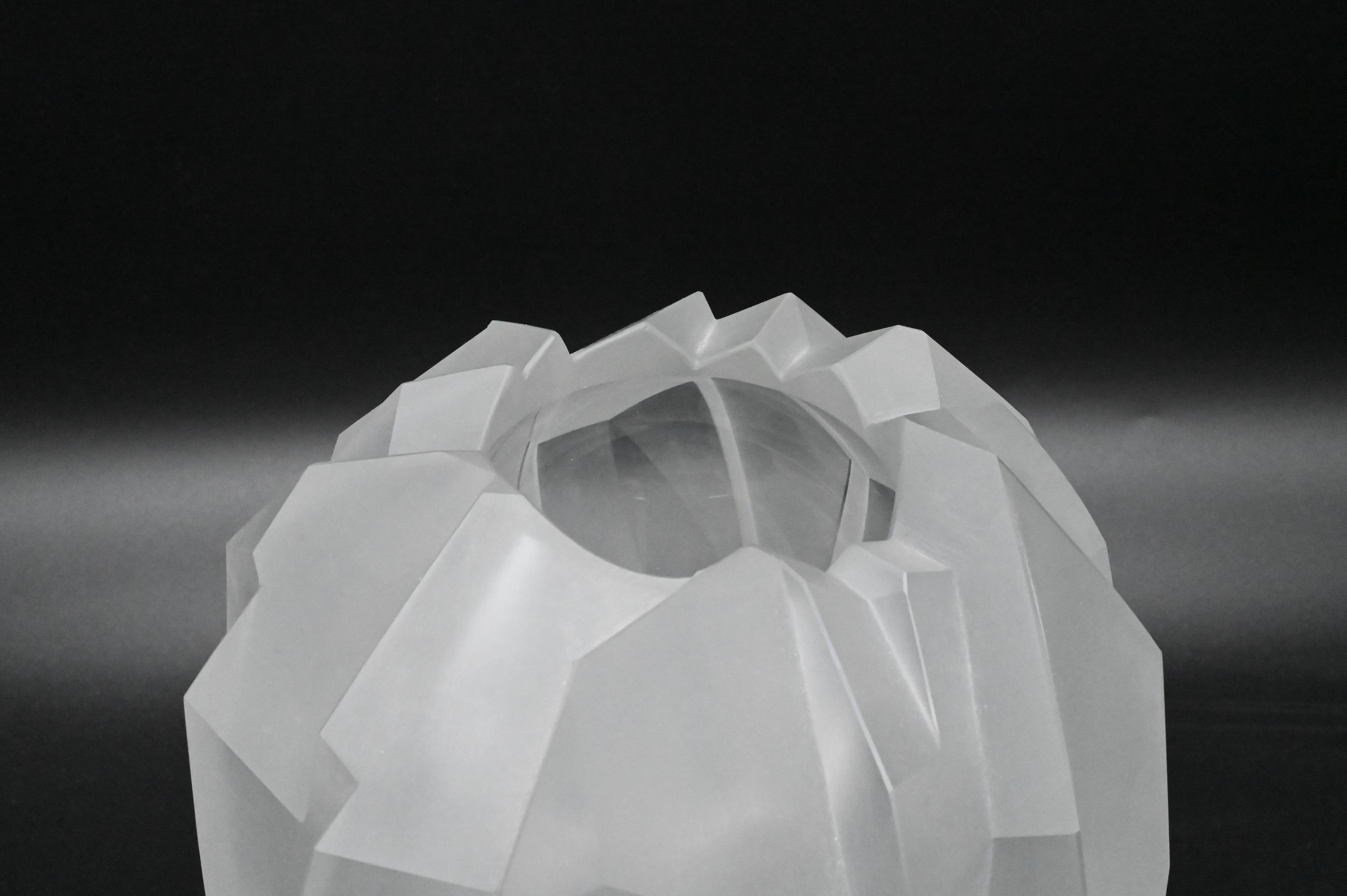 Lalique ” Glacier” Blown Frosted Crystal Vase, by Sebastian Menschhorn from J&L Lobmeyr, inspired by the glacial crystals in the Austrian Alps, having crude cut exterior to reveal soft and round interior, marked on bottom “sm/om J.L 2004 24/181” height 9 inches, width 7 1/2 inches