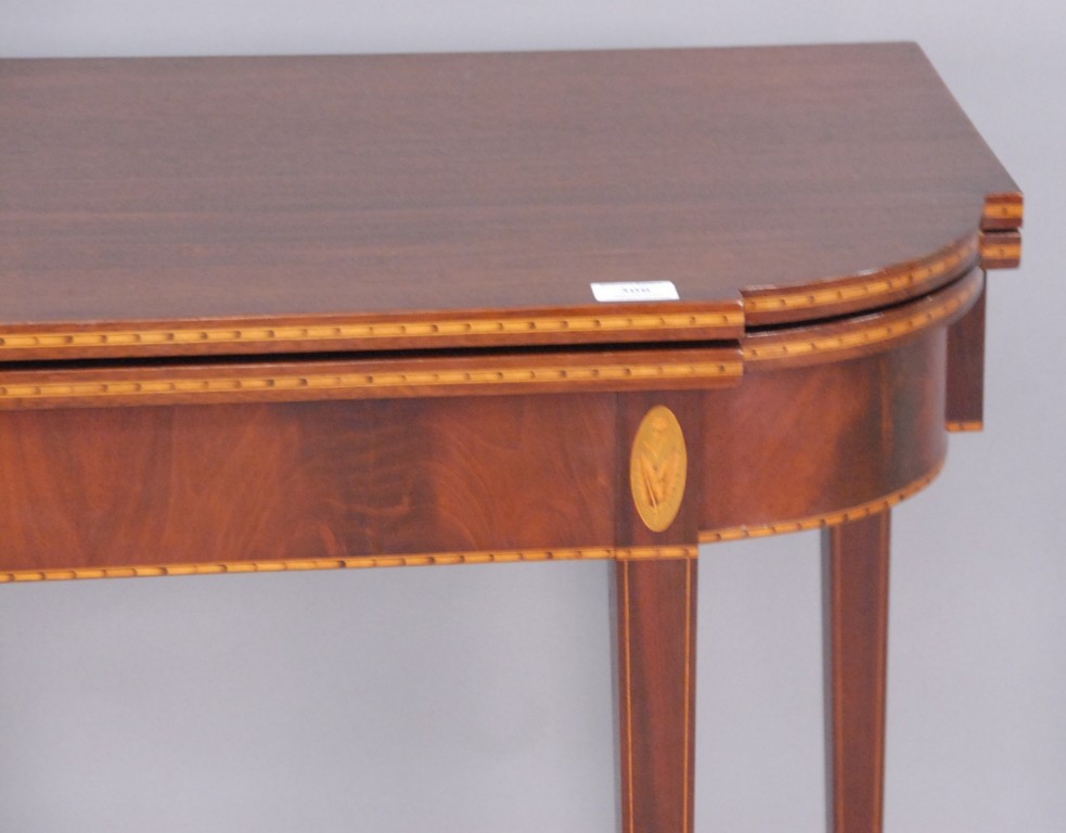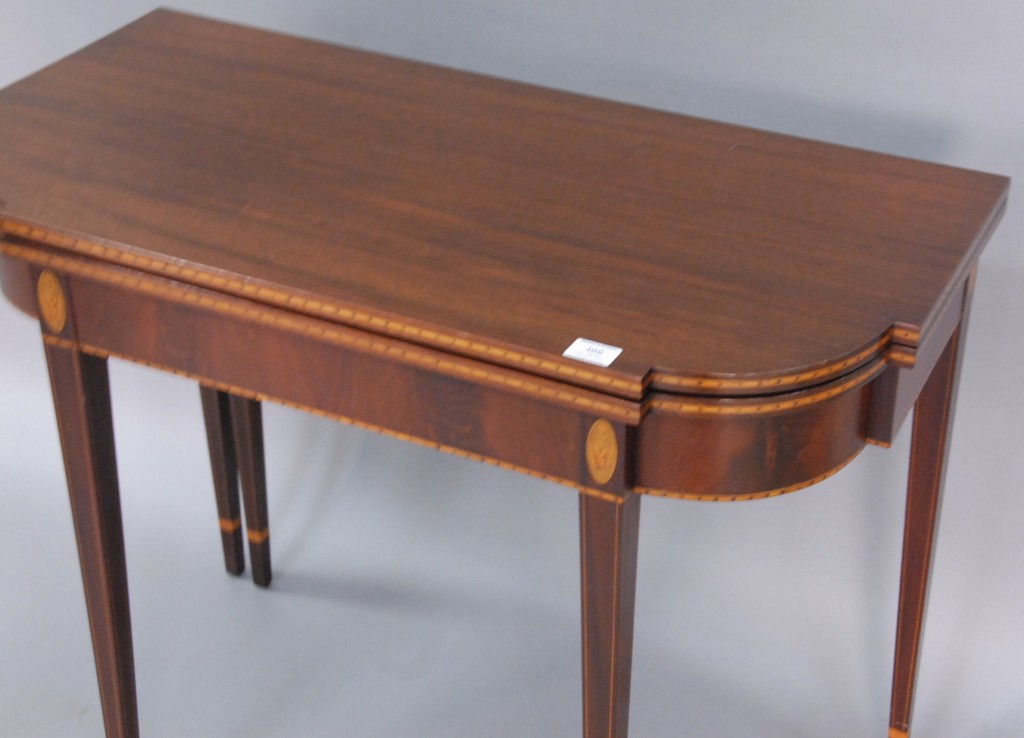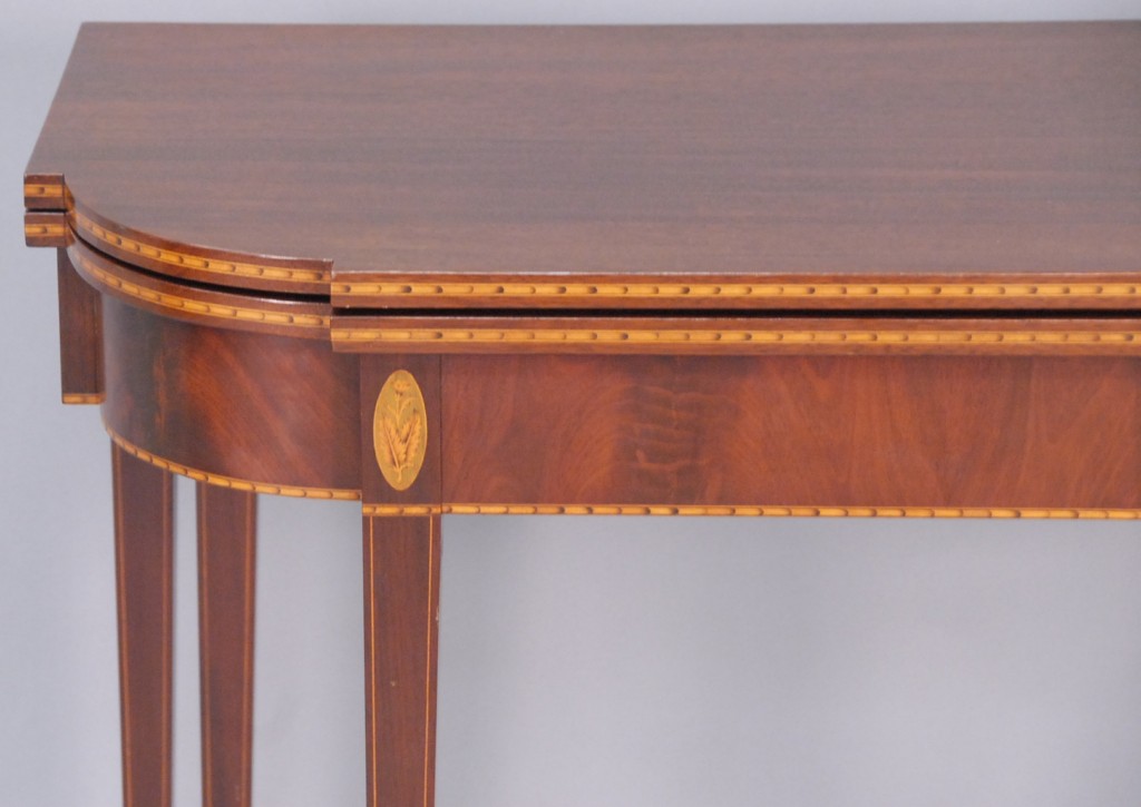 Margolis custom mahogany bench-made game table with D shaped top all set on square tapered legs, branded Margolis 1936. height 30in. width 37in.