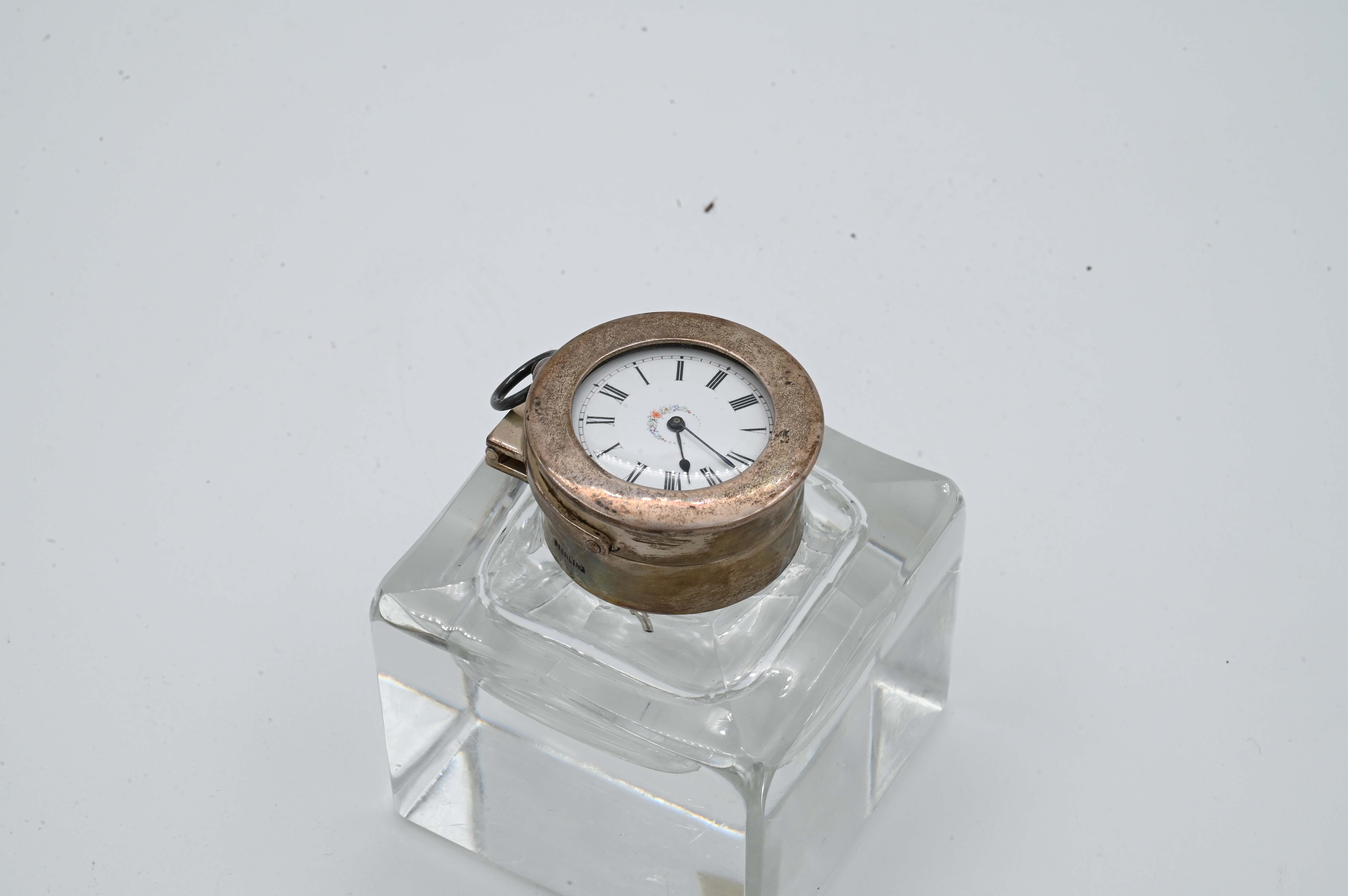 Lot 306: Sterling Silver Cut Glass Pocket Watch Inkwell
