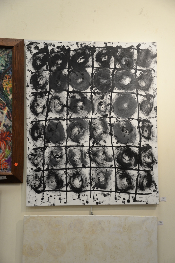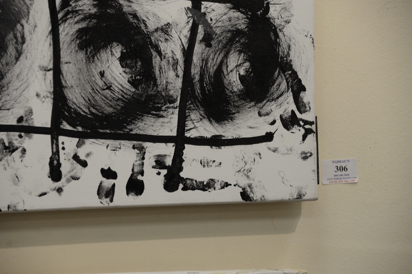 Lot 306: Thomas Kuppler (American, 20th Century), World-night, 2001, acrylic on canvas, initialed and dated lower right TK01, retails for $3,000, 39″ x 32″. Provenance: Purchased directly from the artist, 2005.