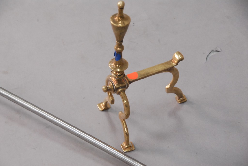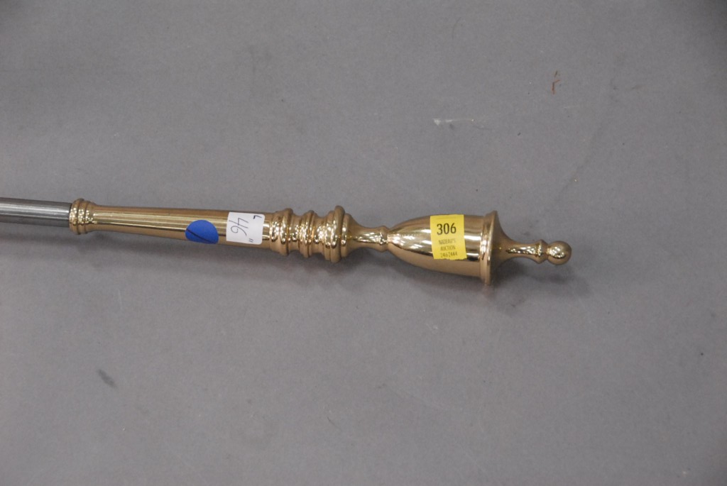 Two piece lot large fireplace fork with brass top and brass rest, lg. 46.