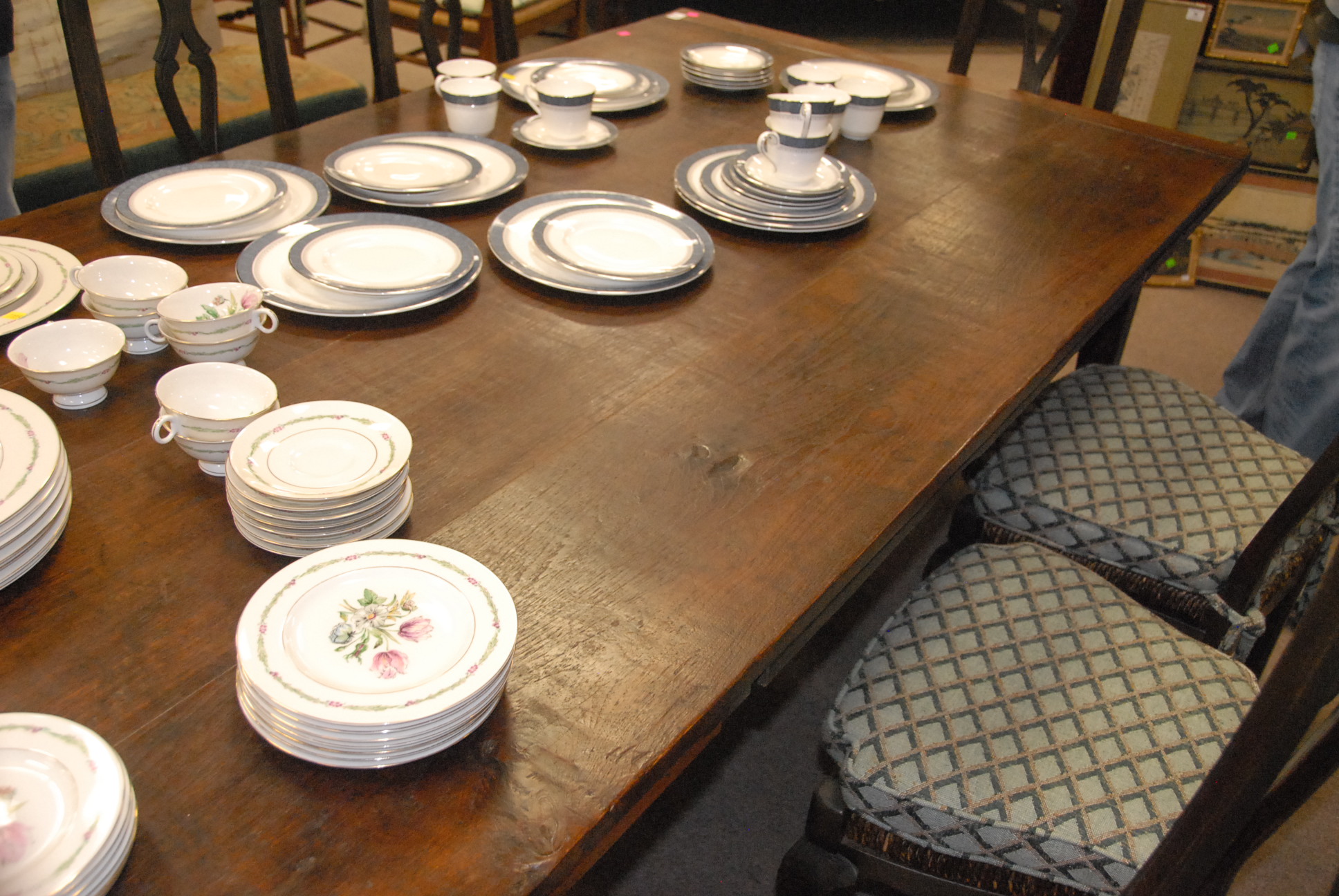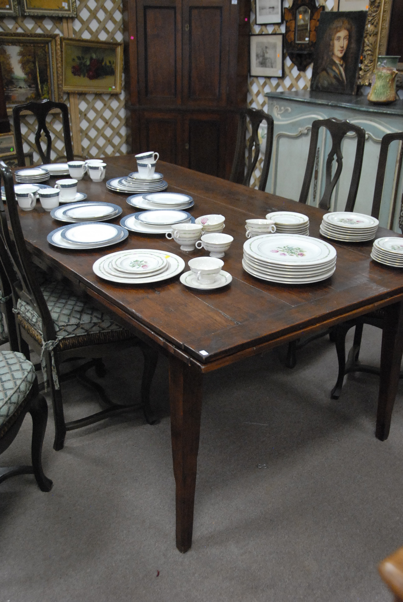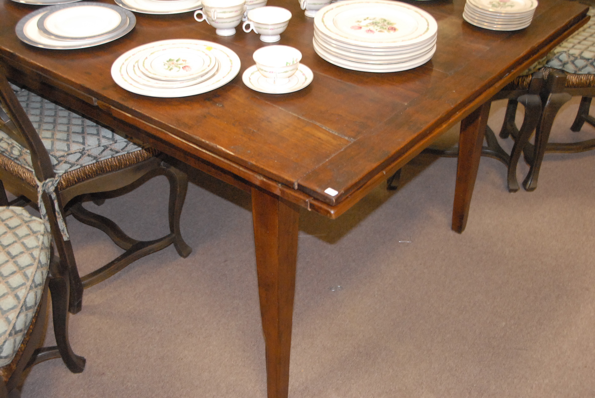 Lot 306: Walnut dining table, top with breadboard ends and pull out extensions all on square tapered legs, 44 x 85 plus two 22 extensions …
