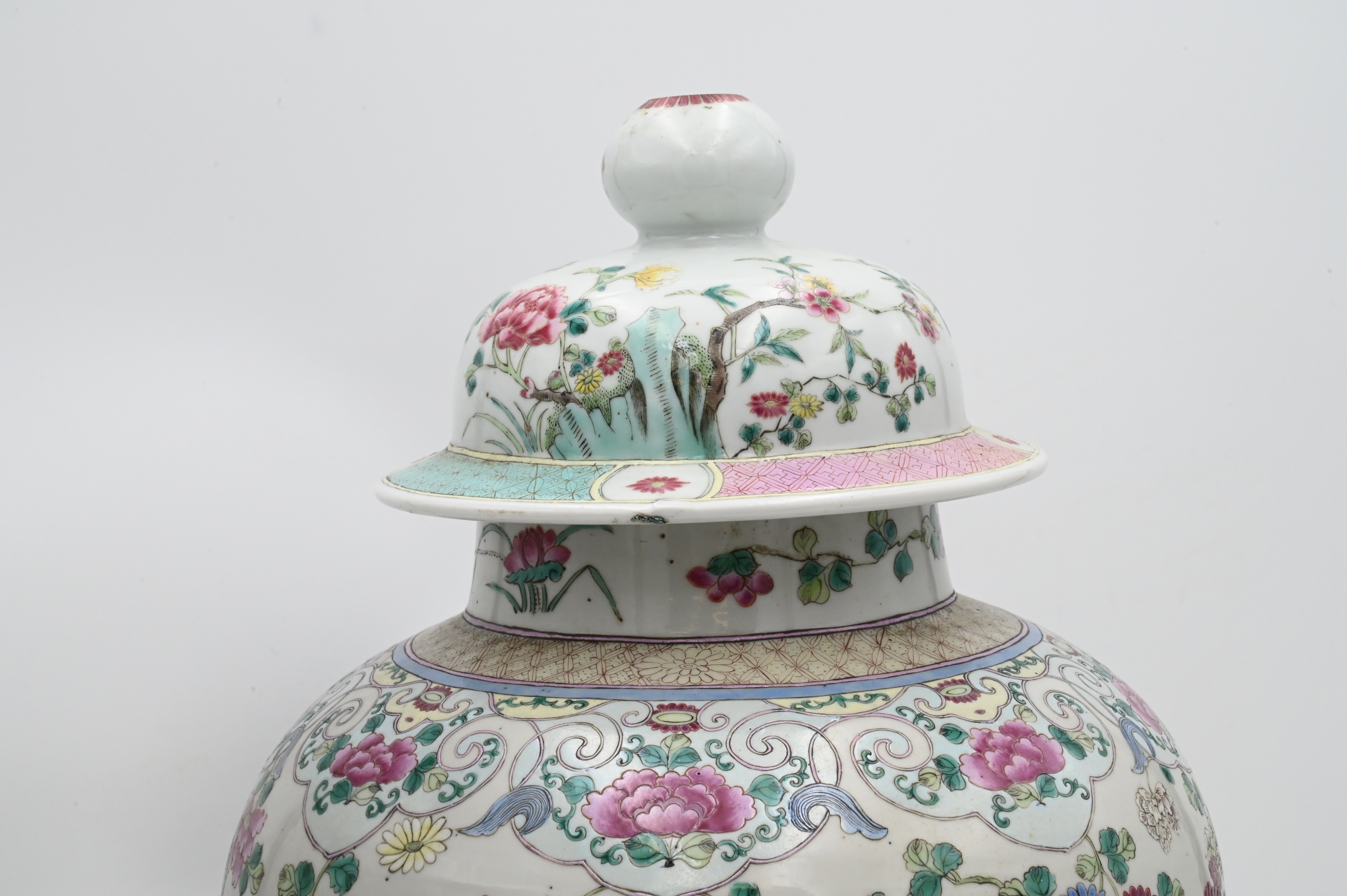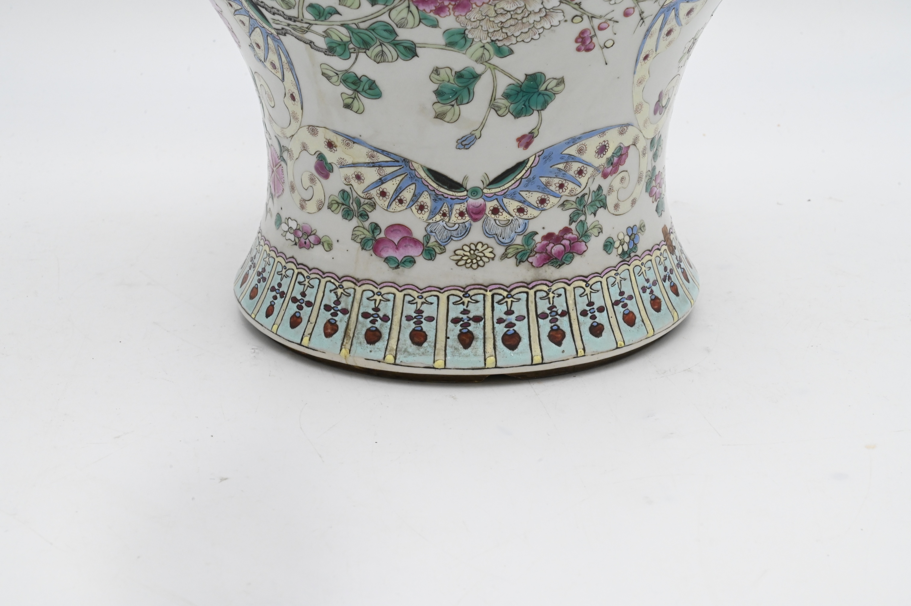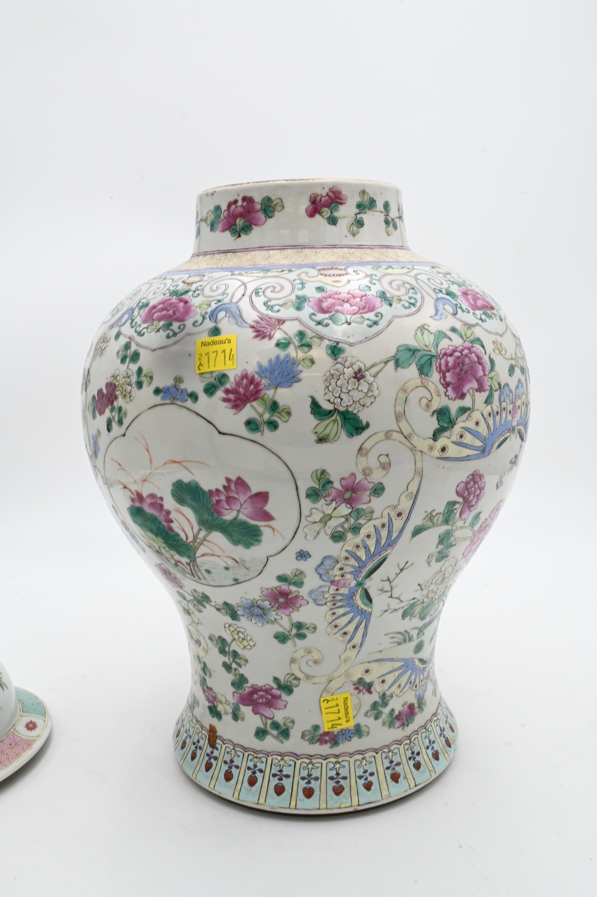 Lot 307: Chinese Famille Rose Baluster Vase & Cover