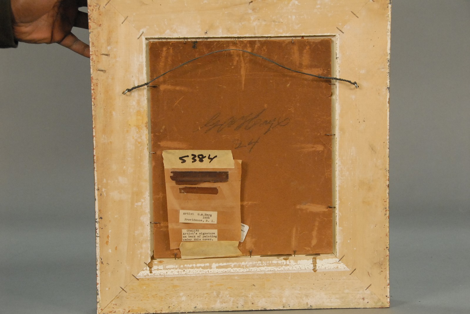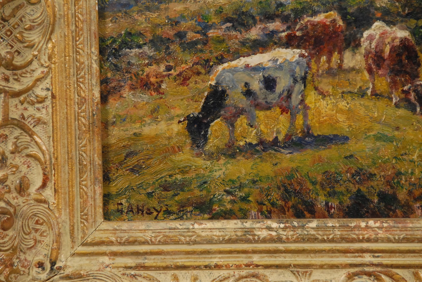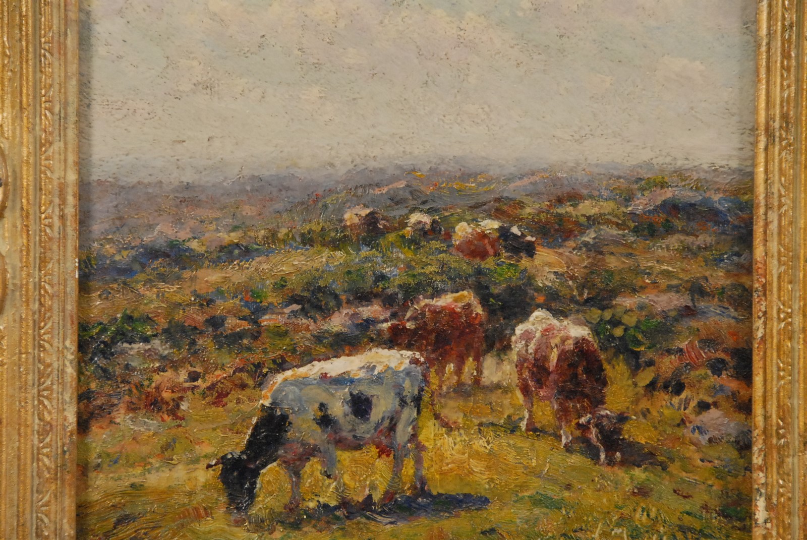 Lot 307: George Arthur Hays 1854-1945 GRAZING oil on board signed lower left G.A. Hays remnants of Providence Art Club label on verso 12 x 10