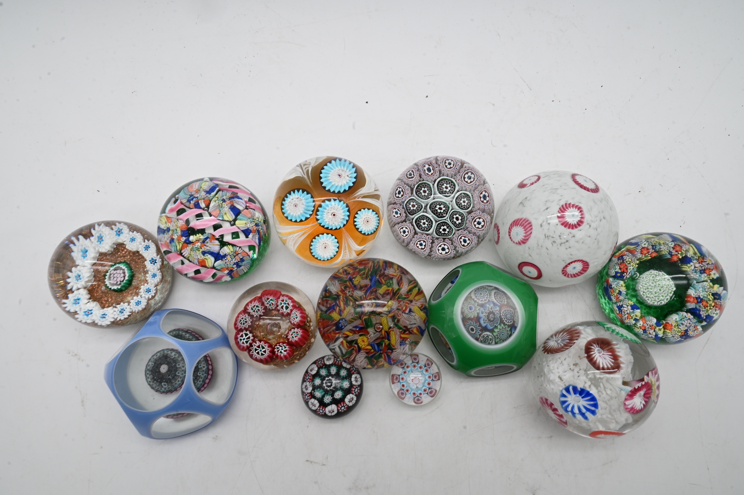 Group of 13 Murano and Art Glass Millefiori Paperweights to include
