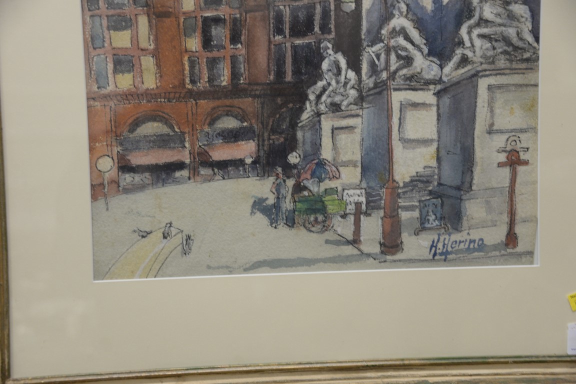 Lot 307: Harry Hering 1887-1967, watercolor, New York City Streets, signed lower right H. Hering, sight size 26 1/2 x 17 1/2.