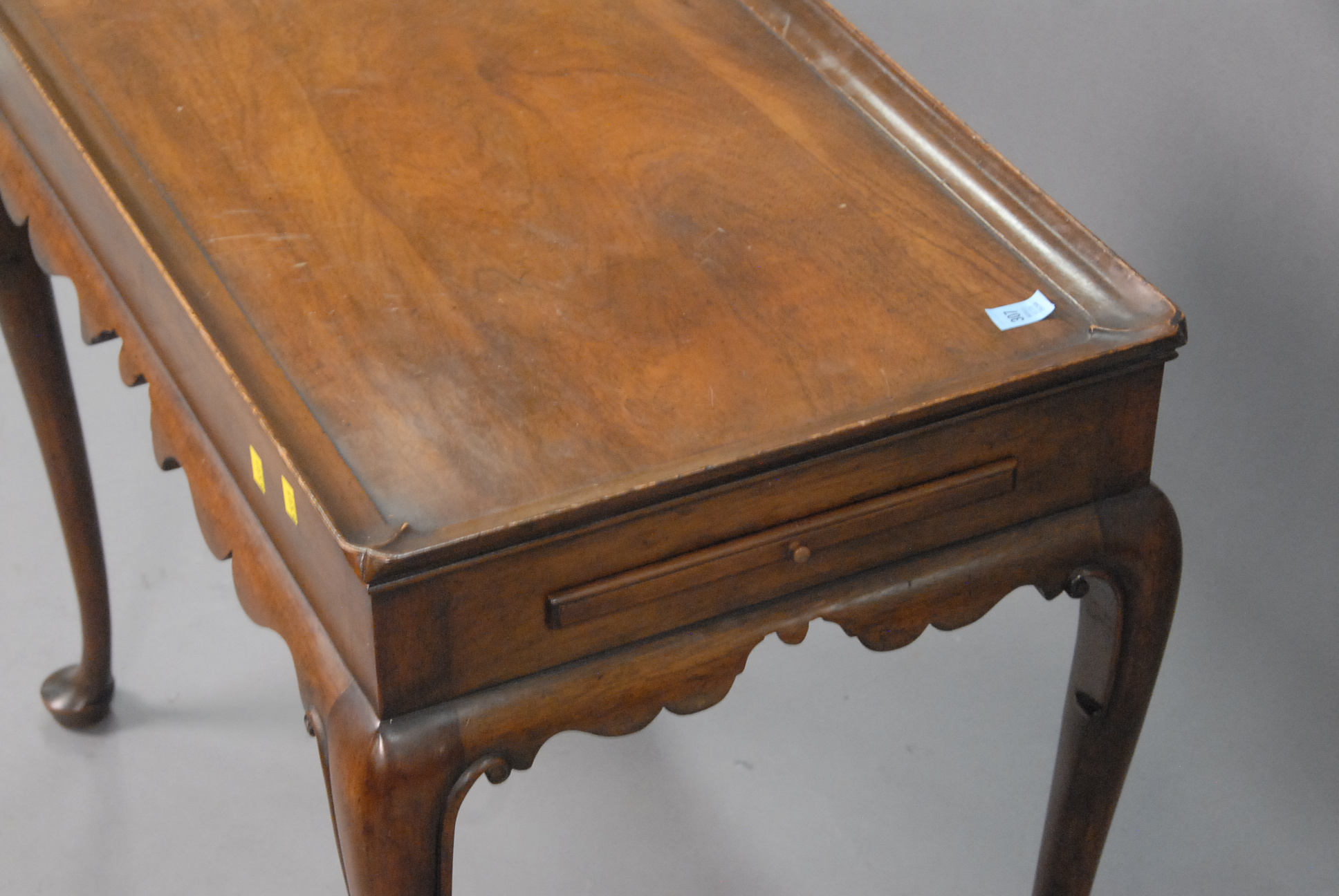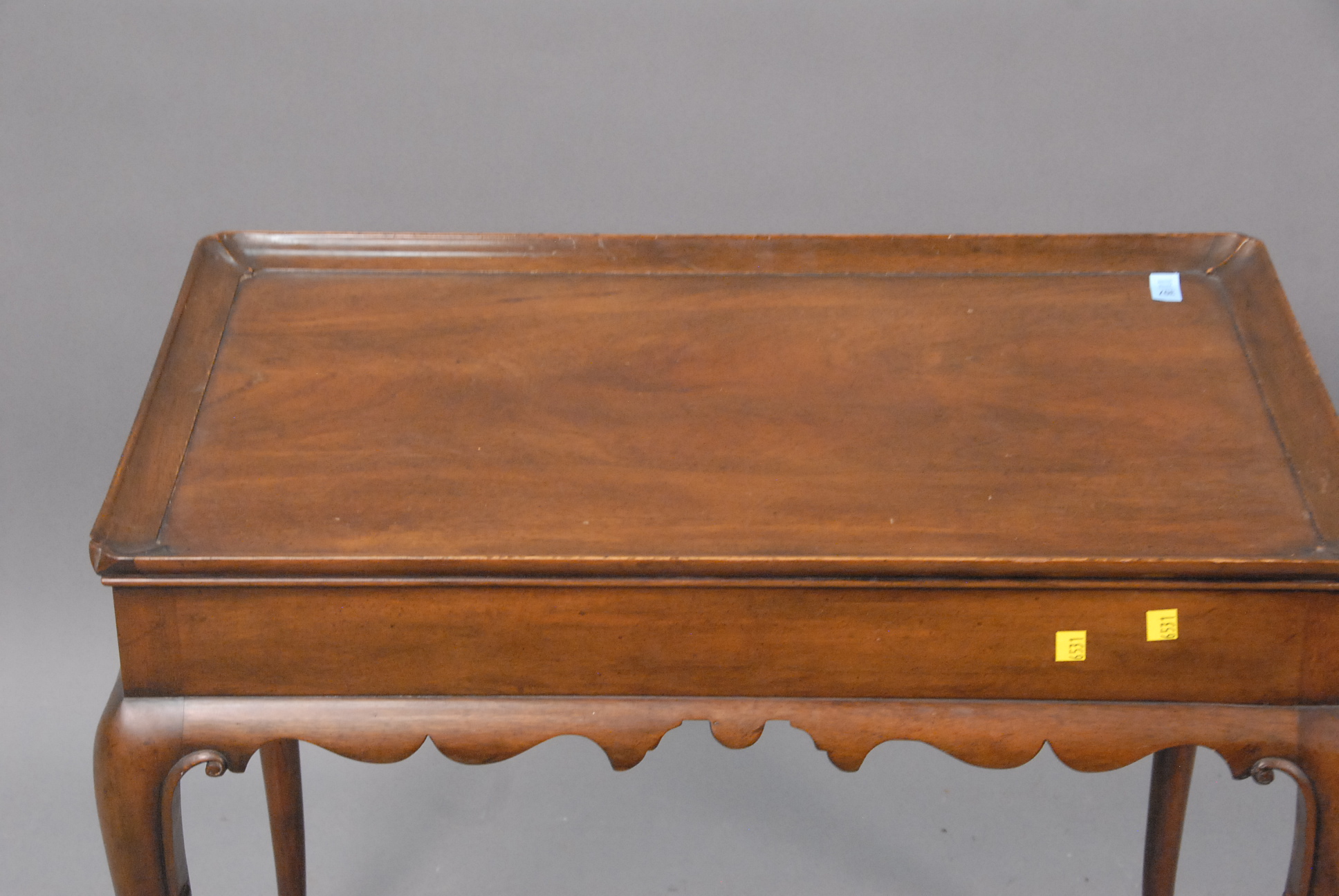 Kittinger custom mahogany Queen Anne style tea table with candle slides and dish top.