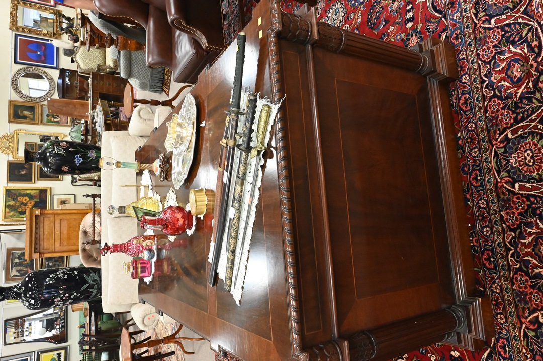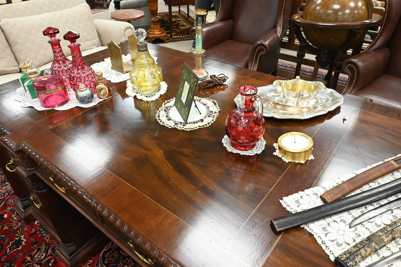 Mahogany Partners Desk, having shaped top, one side with knee hole, height 31 inches, top 44″ x 81″.