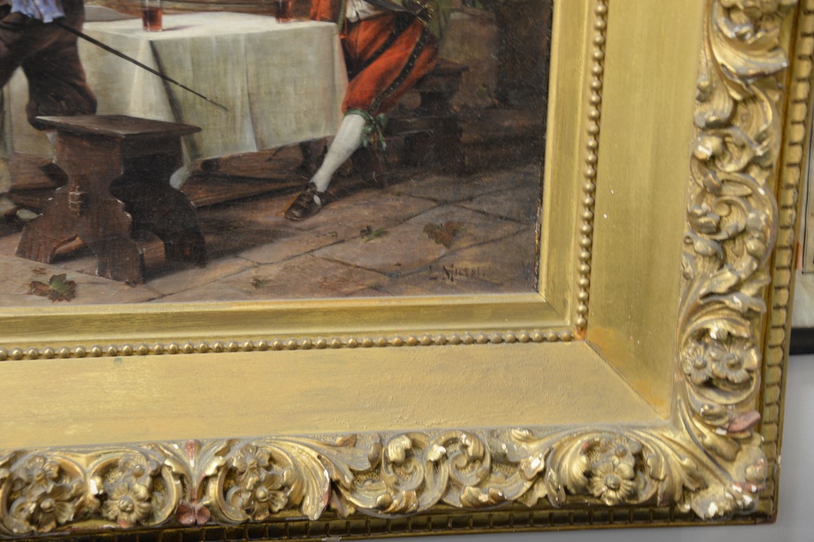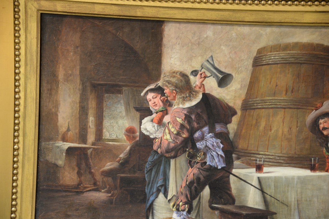 Lot 307: Milesi 19th Century Italian oil on canvas Drinking at the Tavern signed lower right: L. Milesi 17 1/2 x 24 1/2