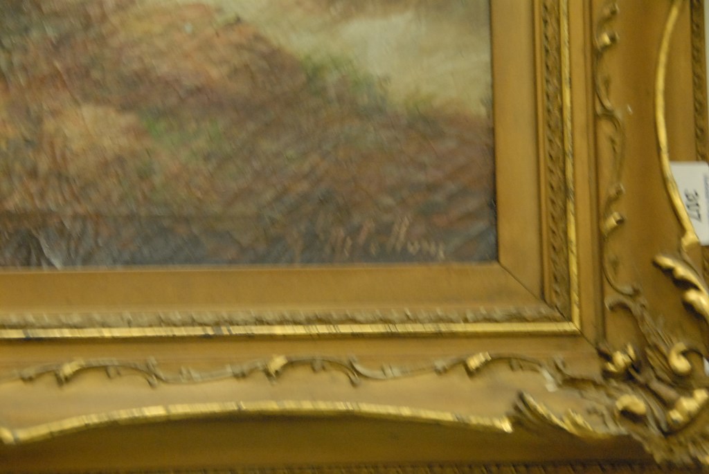 Lot 307: Oil on canvas BULL IN THE MEADOW signed lower right indistinctly restretched and relined 16 x 24