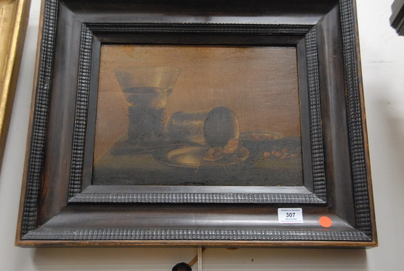 Lot 307: Pieter Claesz 1597-1661 MORNING STILL LIFE oil on board unsigned 10 1/4 x 13 3/4 Provenance: Purchased from J.F. Clark Fine Art