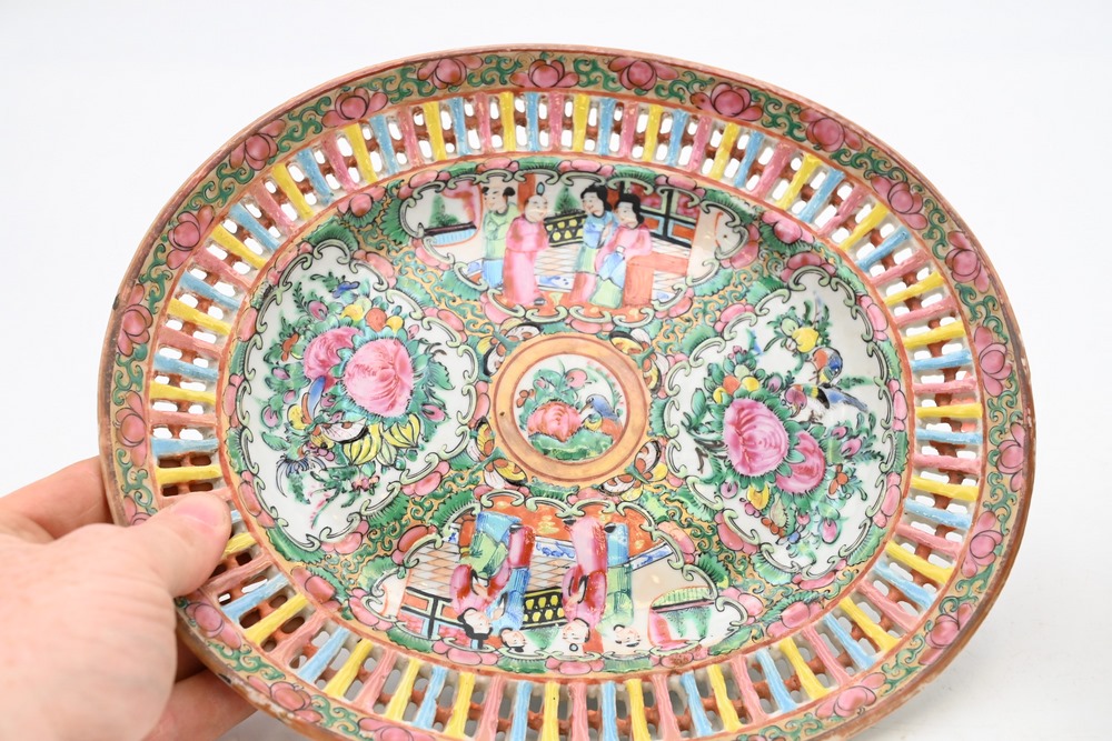 Rose Medallion Porcelain Fruit Basket with Matching Underplate