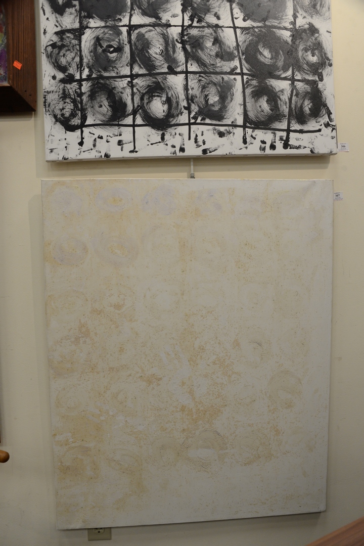 Lot 307: Thomas Kuppler (American, 20th Century), World-day, 2001, acrylic on canvas, initialed and dated lower right TK01, retails for $3,000, 39″ x 32″. Provenance: Purchased directly from the artist, 2005.