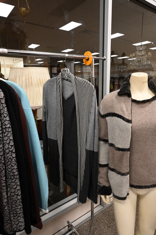 Lot 308: 16 Piece Lot of Designer Sweater Sets, designers include Delle Celle, Malo, White/Black, OGGI, along with others, in wool, jersey, c…