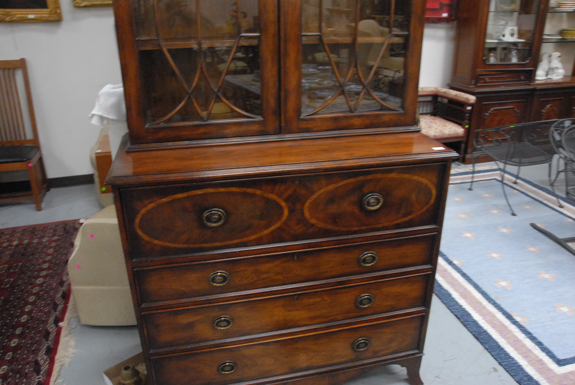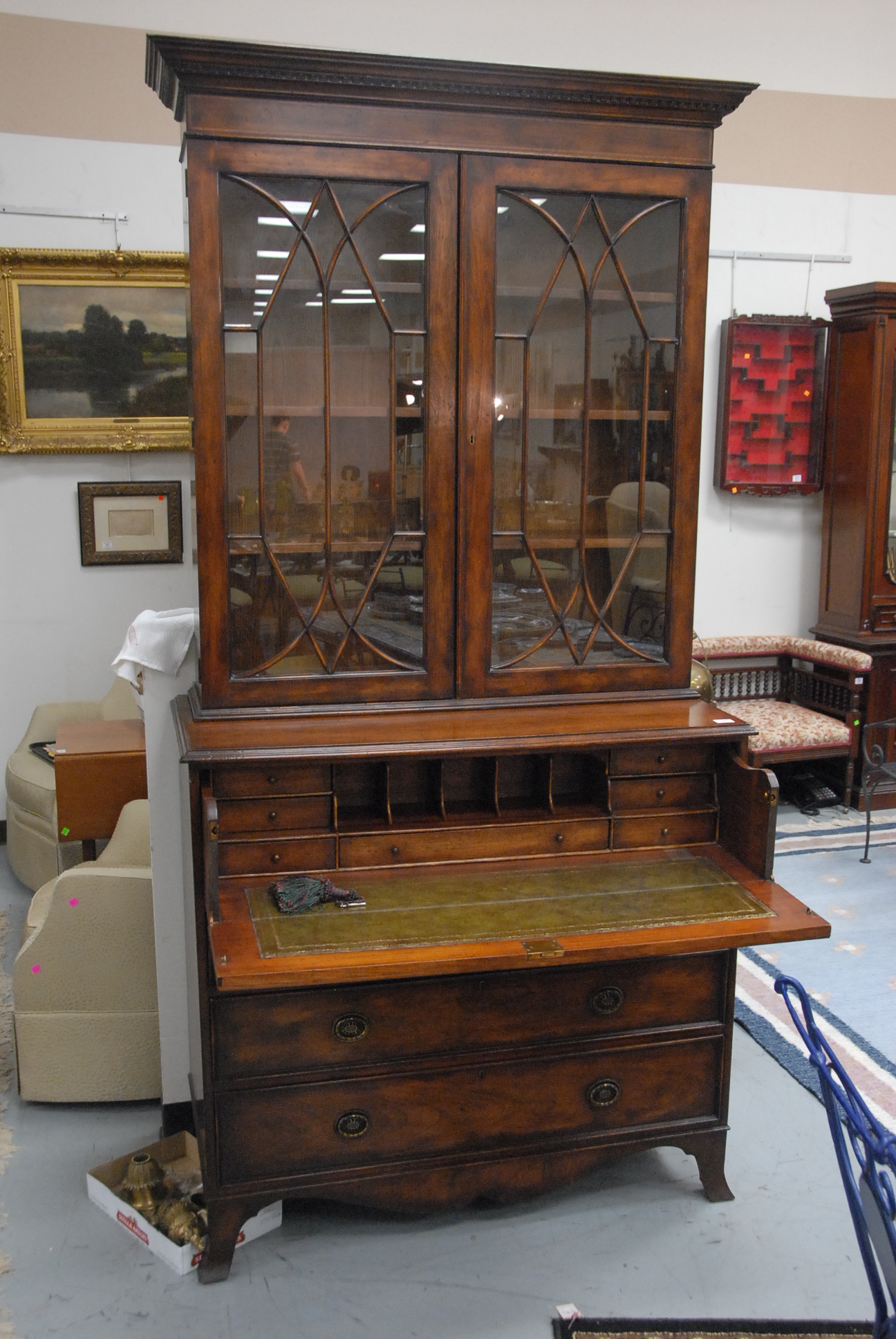 Contemporary George IV style butler’s secretary desk in two parts, ht. 92in. wd. 45in.