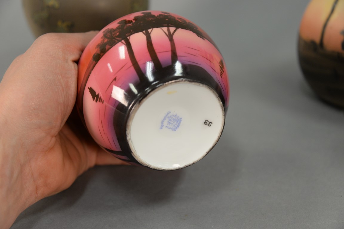 Lot 308: Four porcelain vases to include Turn Teplitz, Turn Vienna, Royal Bayreuth, and a hand painted Nippon urn with stopper. ht. 5in. to 8…