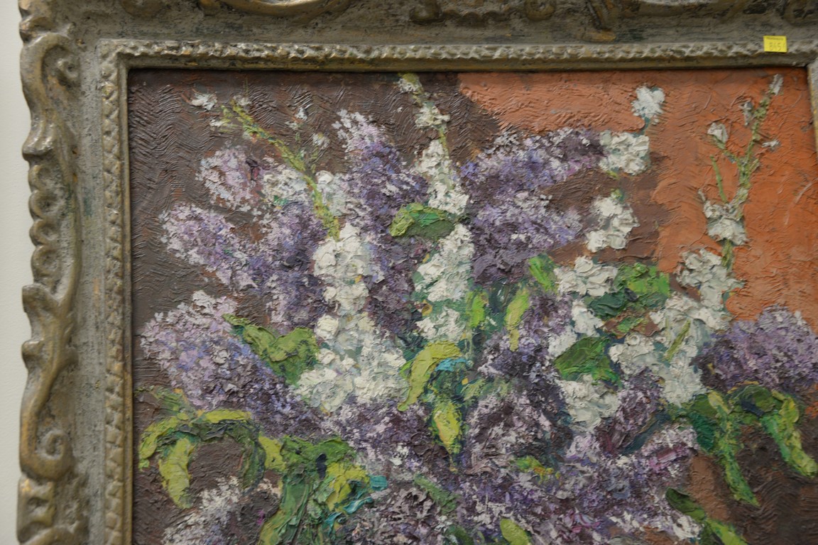 Lot 308: Harry Hering 1887-1967, oil on artist board, Still Life of Flowers Lilacs, signed lower right: Harry Hering, 31 x 26.