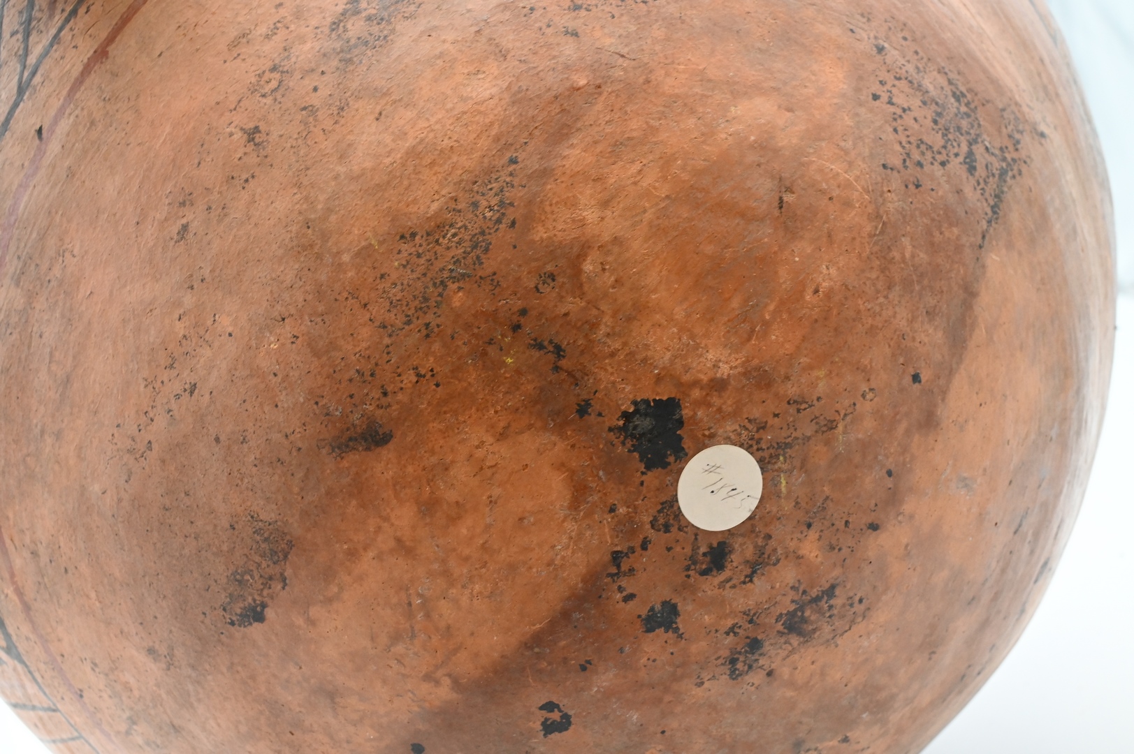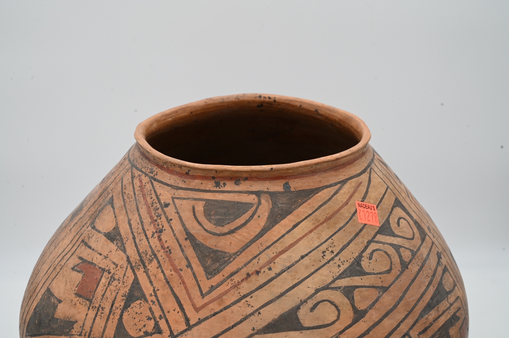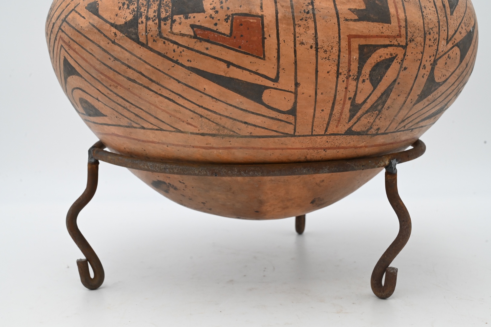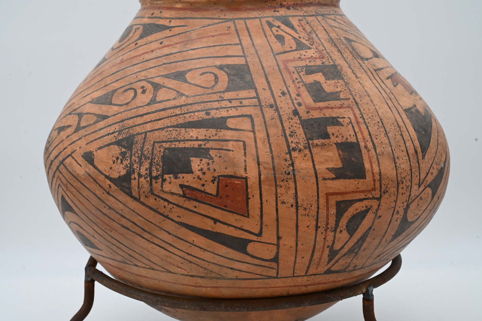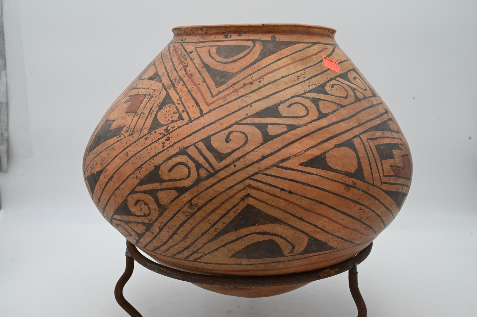 Large Pottery Pre-Columbian Style Painted Jar, on stand, height 15 inches. Provenance: Estate of Peter Tillou, Litchfield, Connecticut.