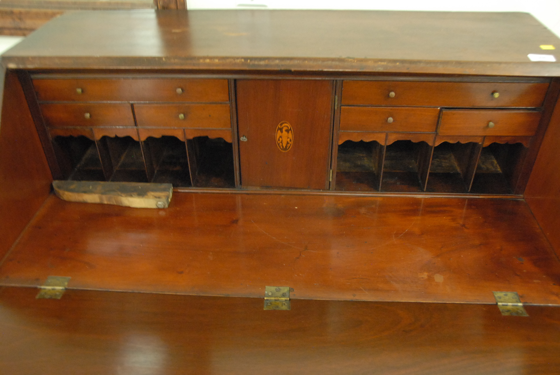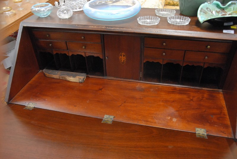 Mahogany slant front desk, circa 1780-1800 no feet. ht. 42in. wd. 40in.