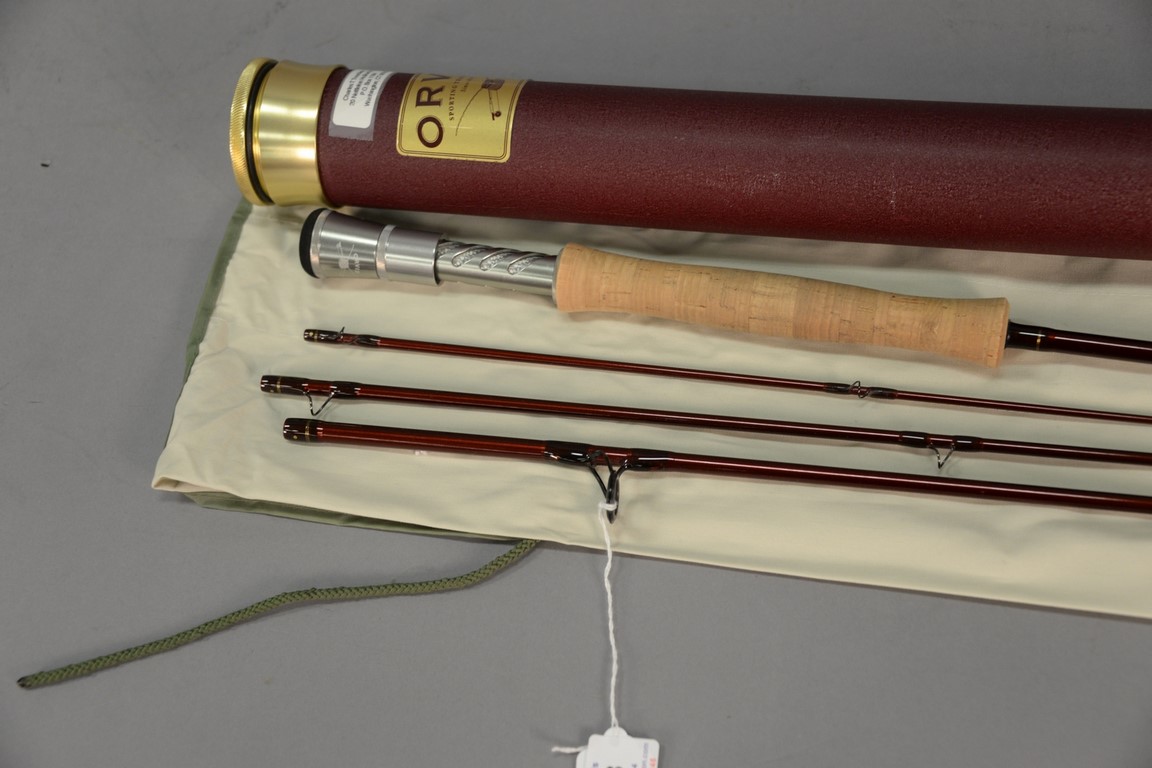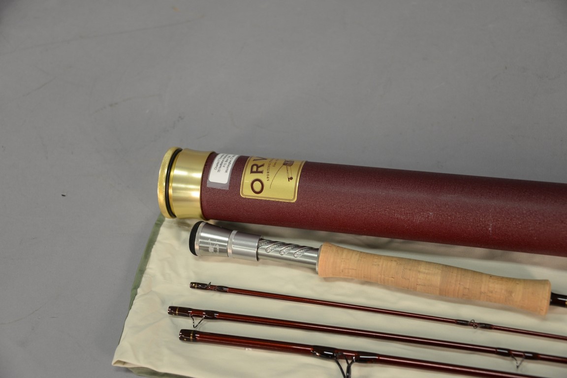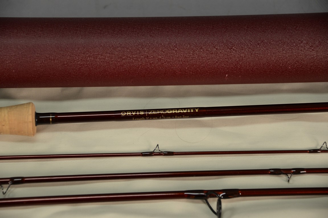 Orvis fly rod zero gravity, 9′ 4 3/8 oz. 8wt., Mid Flex 7.5, four part with aluminum case.