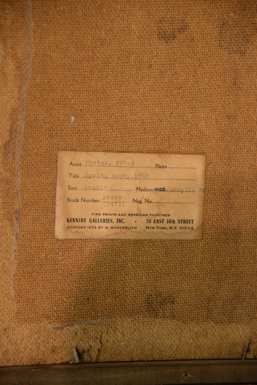 Lot 308: PETER POSKAS 1939 Spring Room, 1968 acrylic on masonite signed lower right Peter Poskas Kennedy Galleries label on reverse 48 x 26