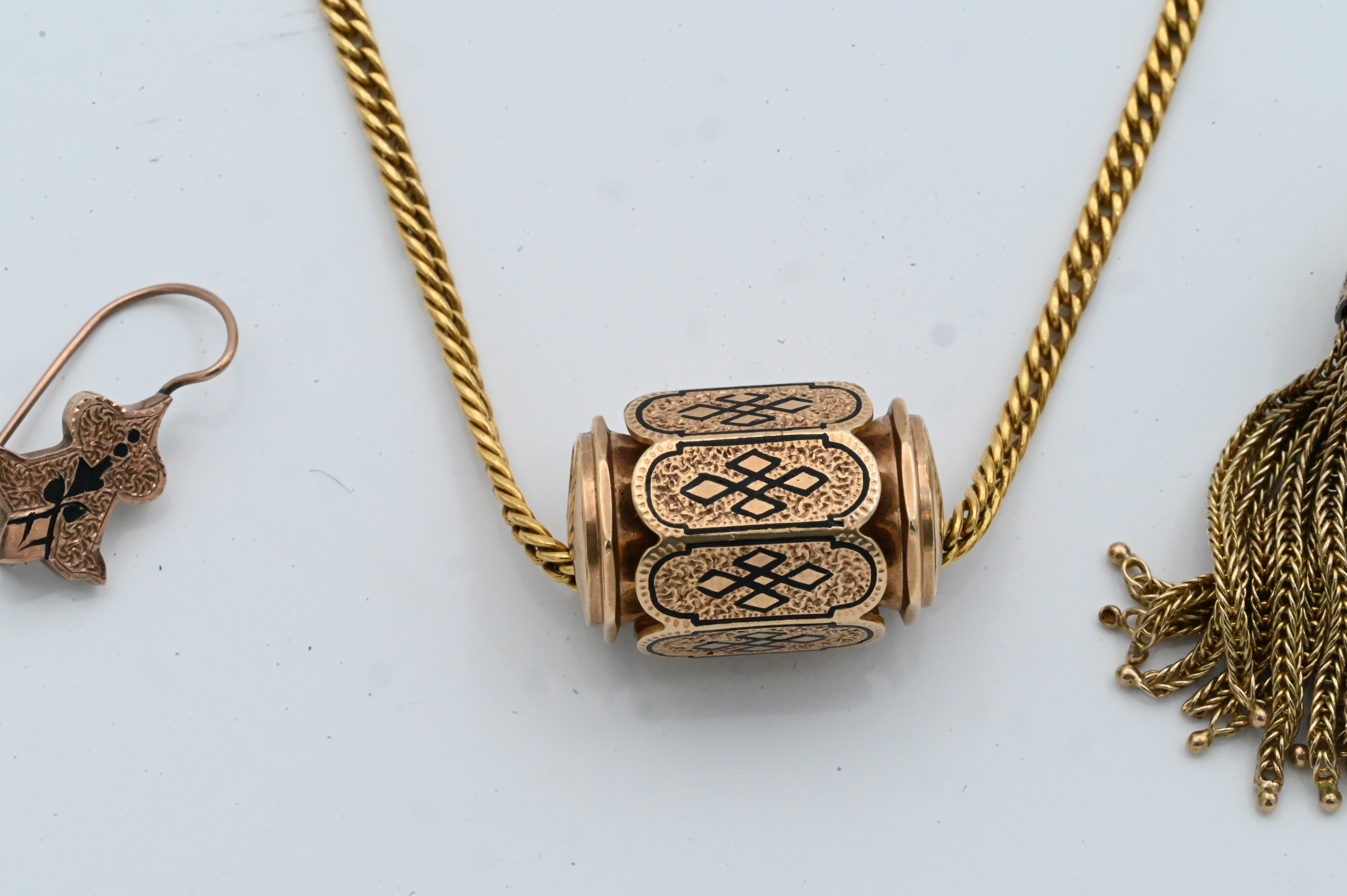Lot 308: Three Piece Enamel Victorian 14K Gold Group
