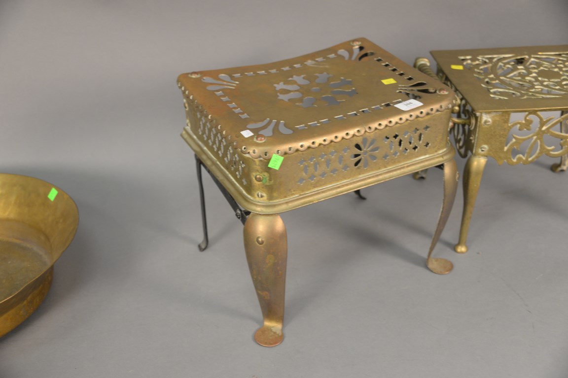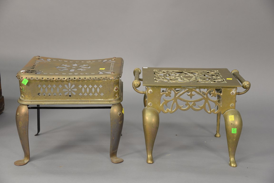 Two brass footman, 19th century, ht. 12 in. & 13 in.