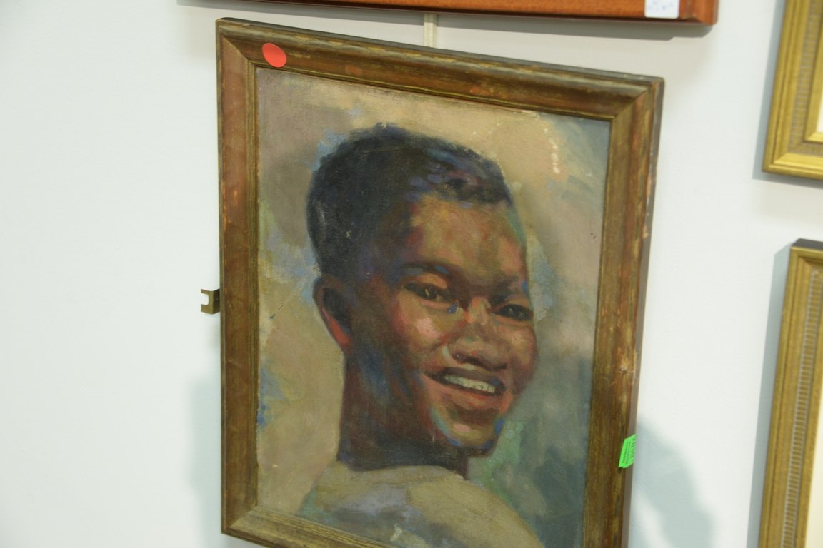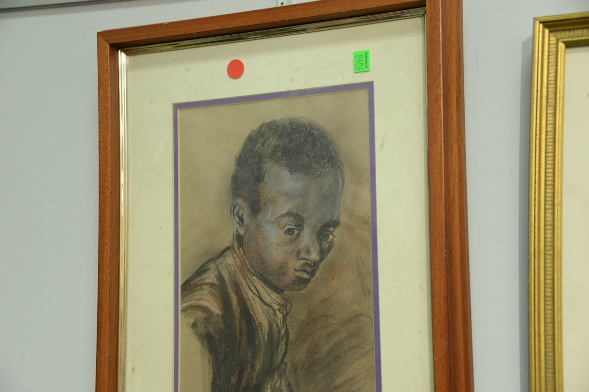 Lot 308: Two portrait paintings including an oil on canvas portrait of a young man Cletus by Henry Jones written on verso and a pastel port…