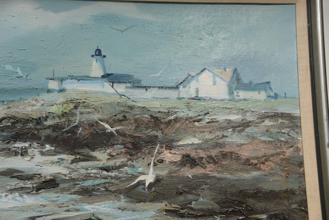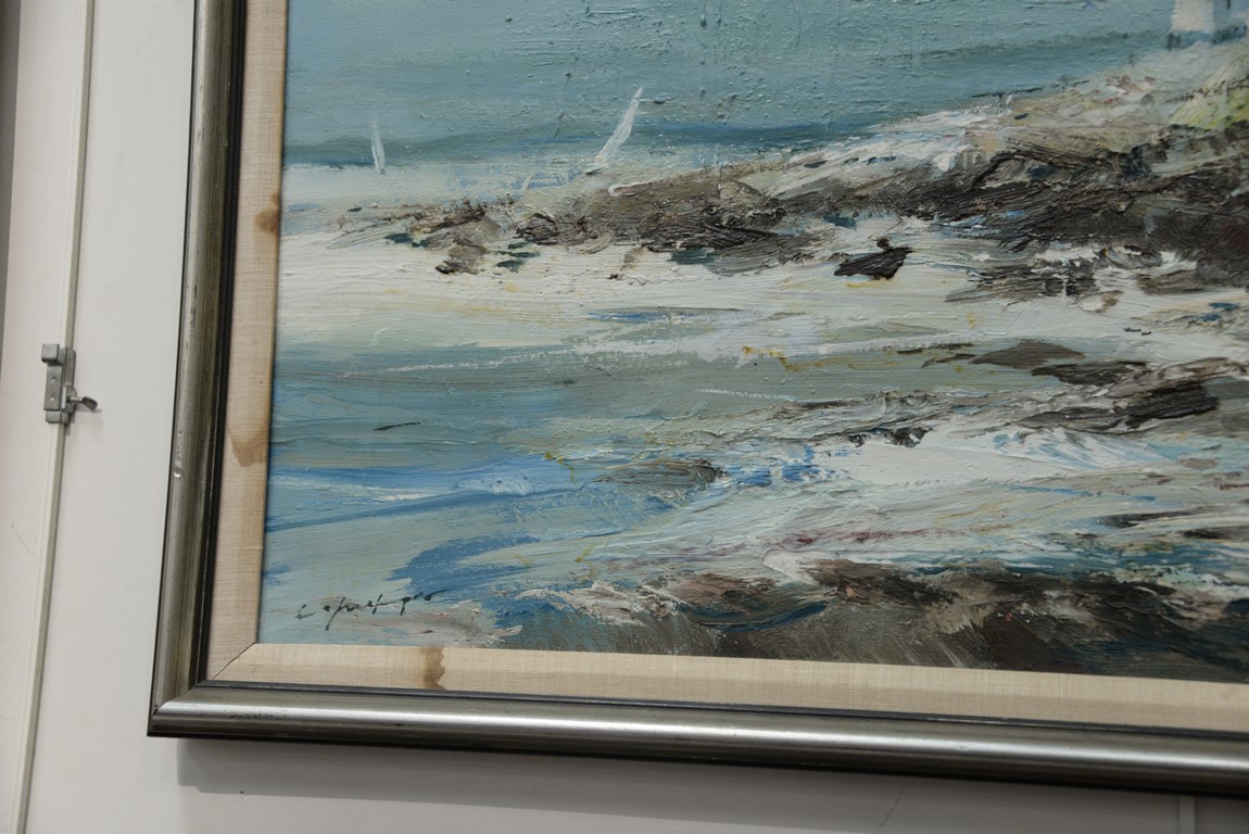 CHARLES C. GRUPPE 1928 Light House and Sea Coast oil on canvas signed lower left 20 x 38