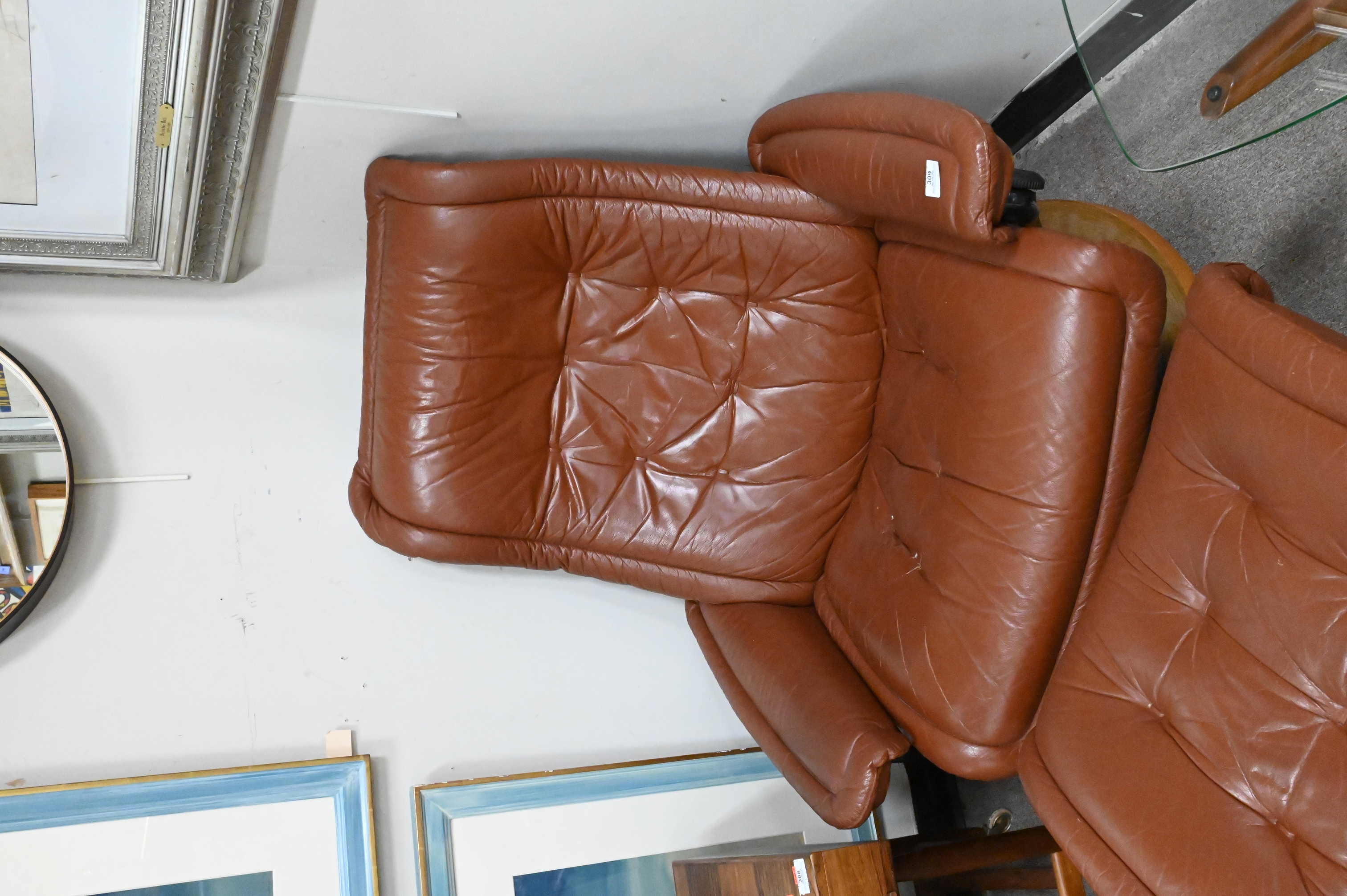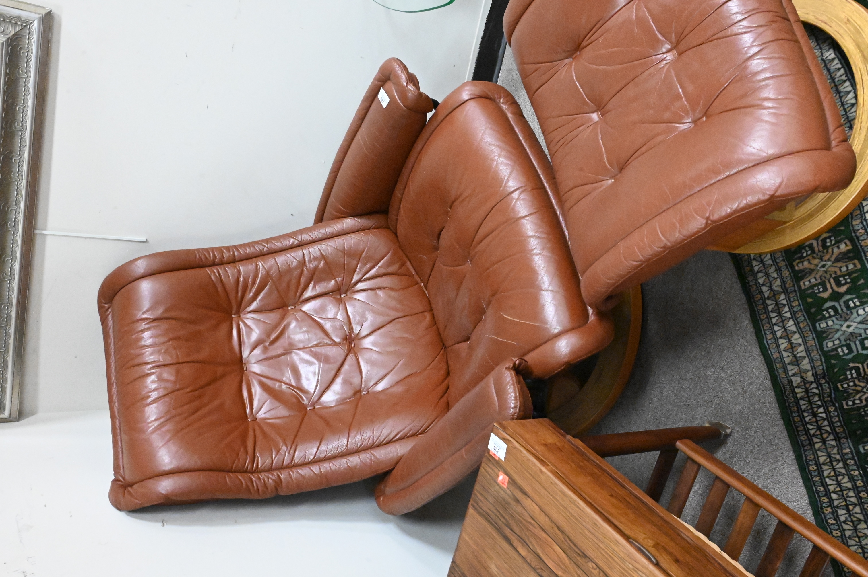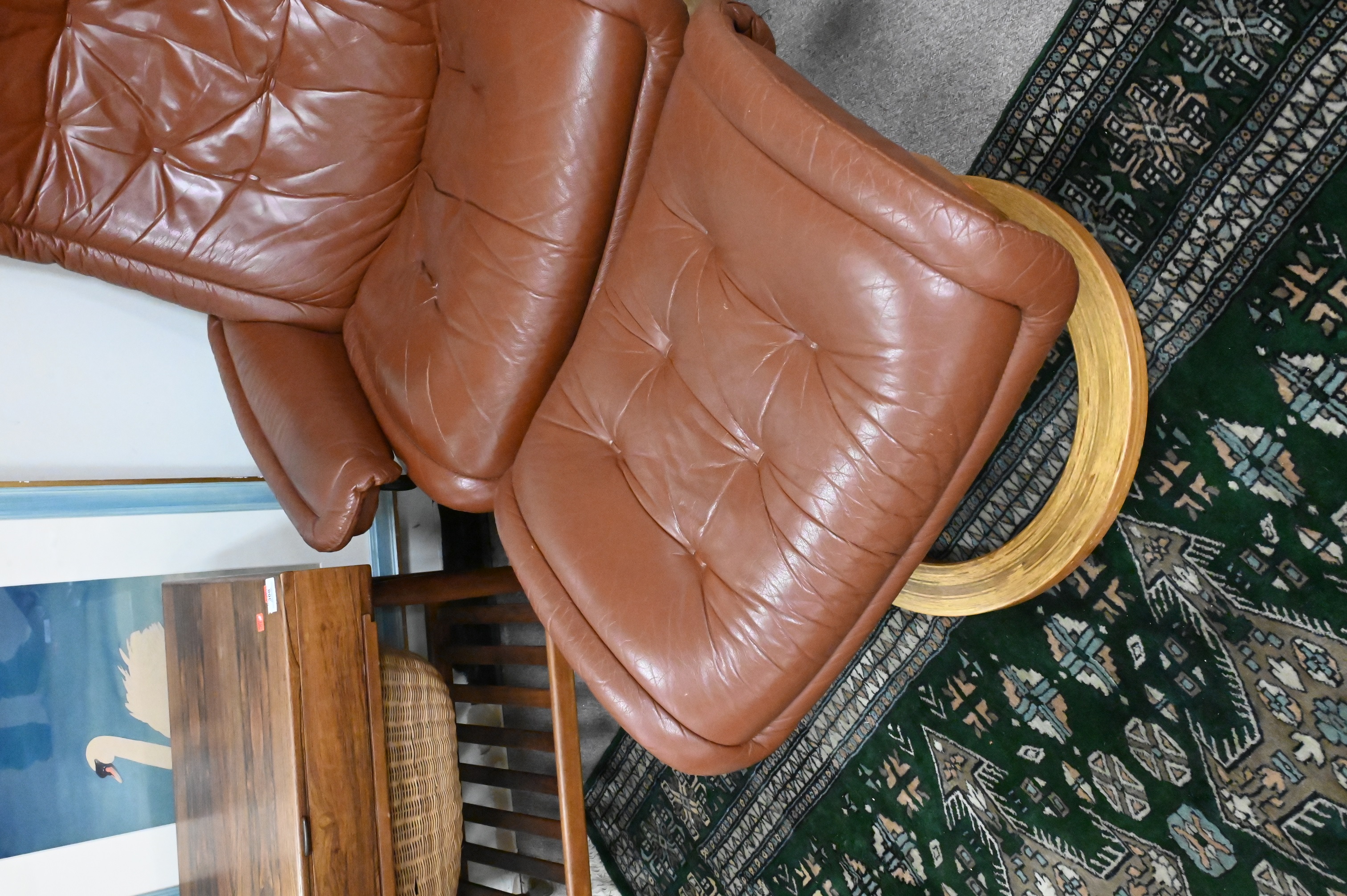 Lot 309: J.E. Ekornes Chair and Ottoman in Brown Leather