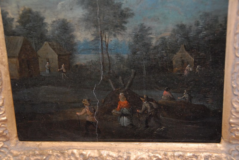 Old Master LANDSCAPE WITH PEOPLE 18th century oil on cribbed panel unsigned 8 x 9