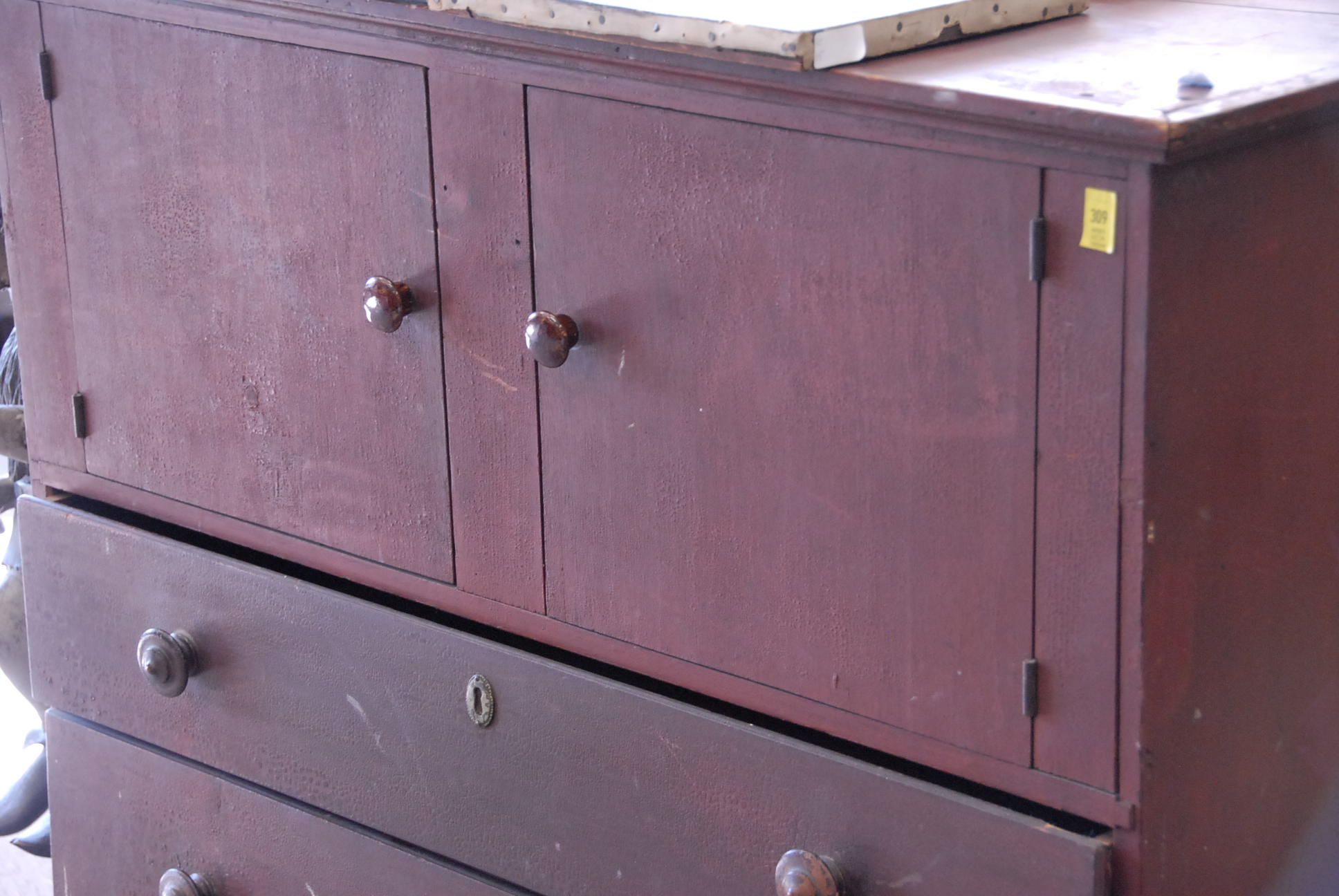Primitive blanket chest re-made with 2 doors and a bracket base.
