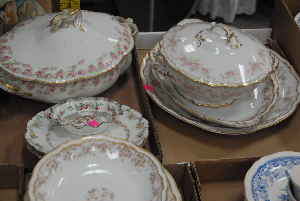 Six box lots of plates, bowls, and covered dishes including Cauldron and Limoges.