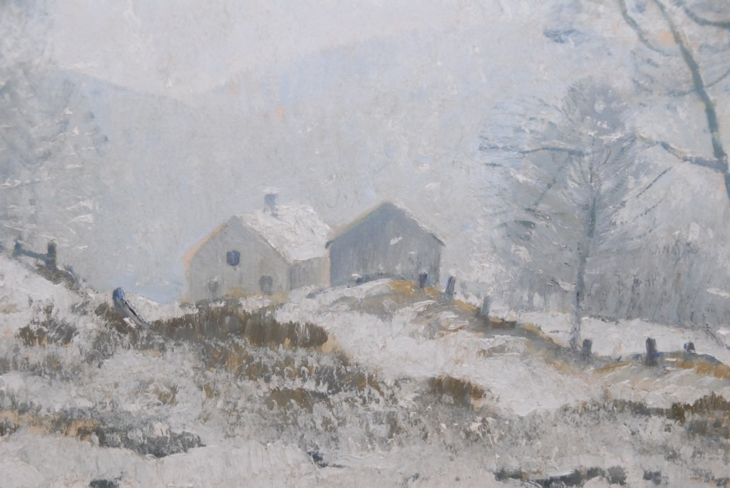 Guy Carleton Wiggins 1883-1962 FALLING SNOW oil on canvas signed lower right Guy Wiggins titled, signed, and dated on reverse Falling Snow, Guy Wiggins 1924 20 x 24